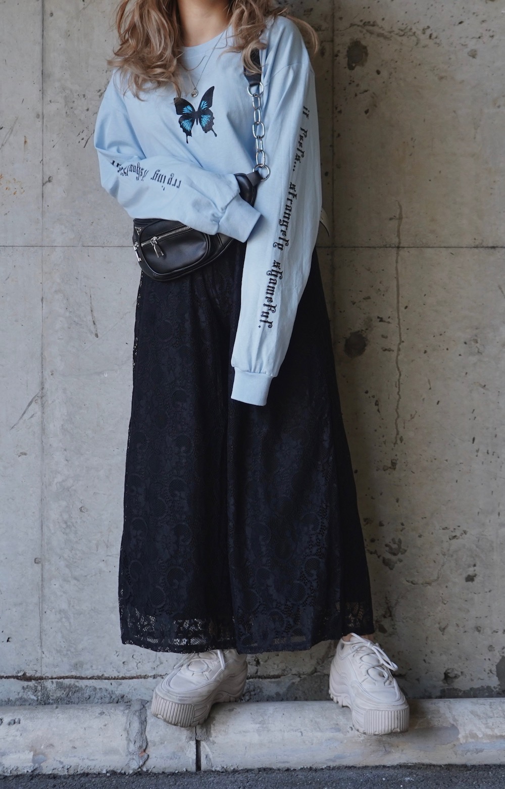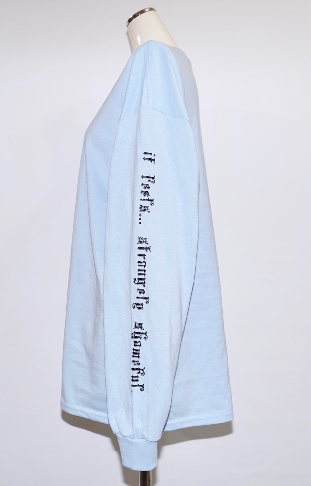 Blue Butterfly Slogan Sleeve Big L/S TEE(light blue)
