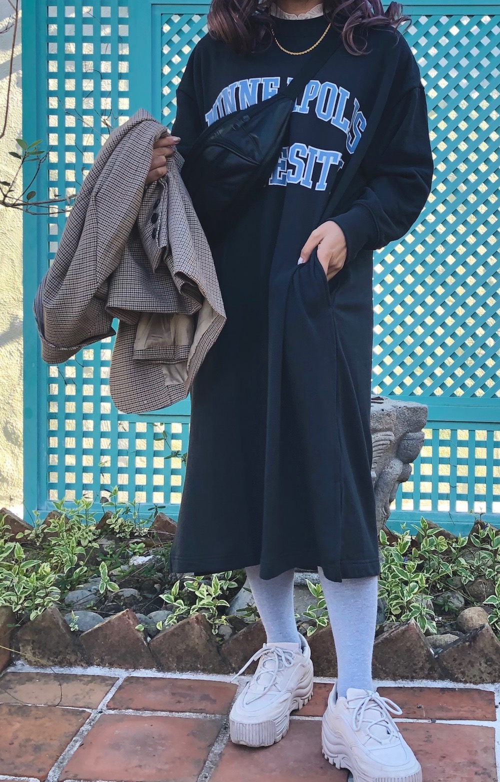 College Logo Sweat Long Onepiece(black)