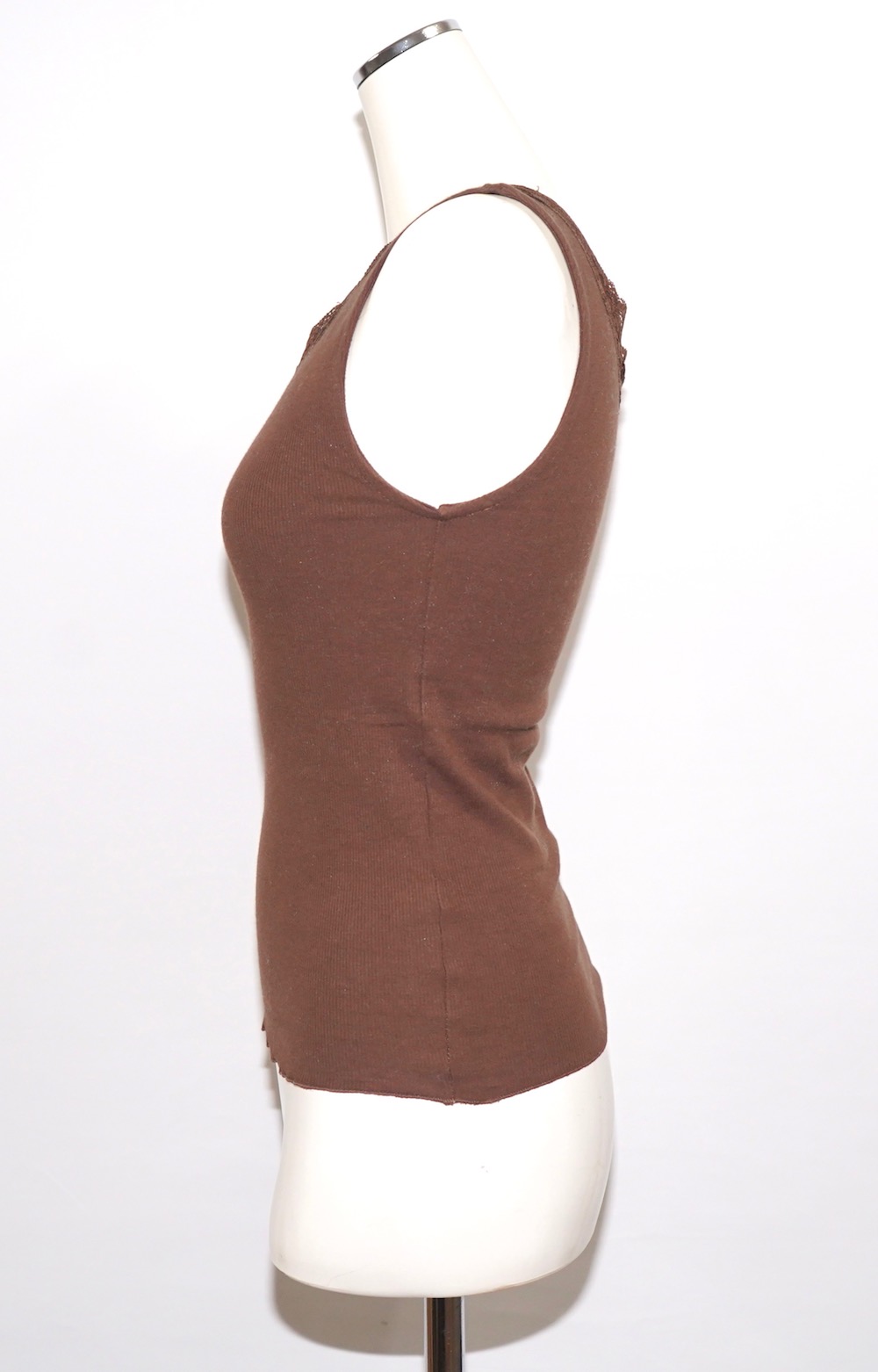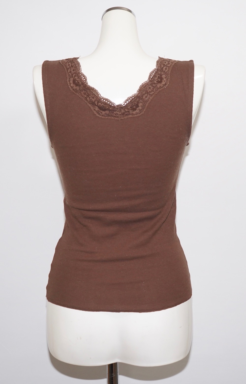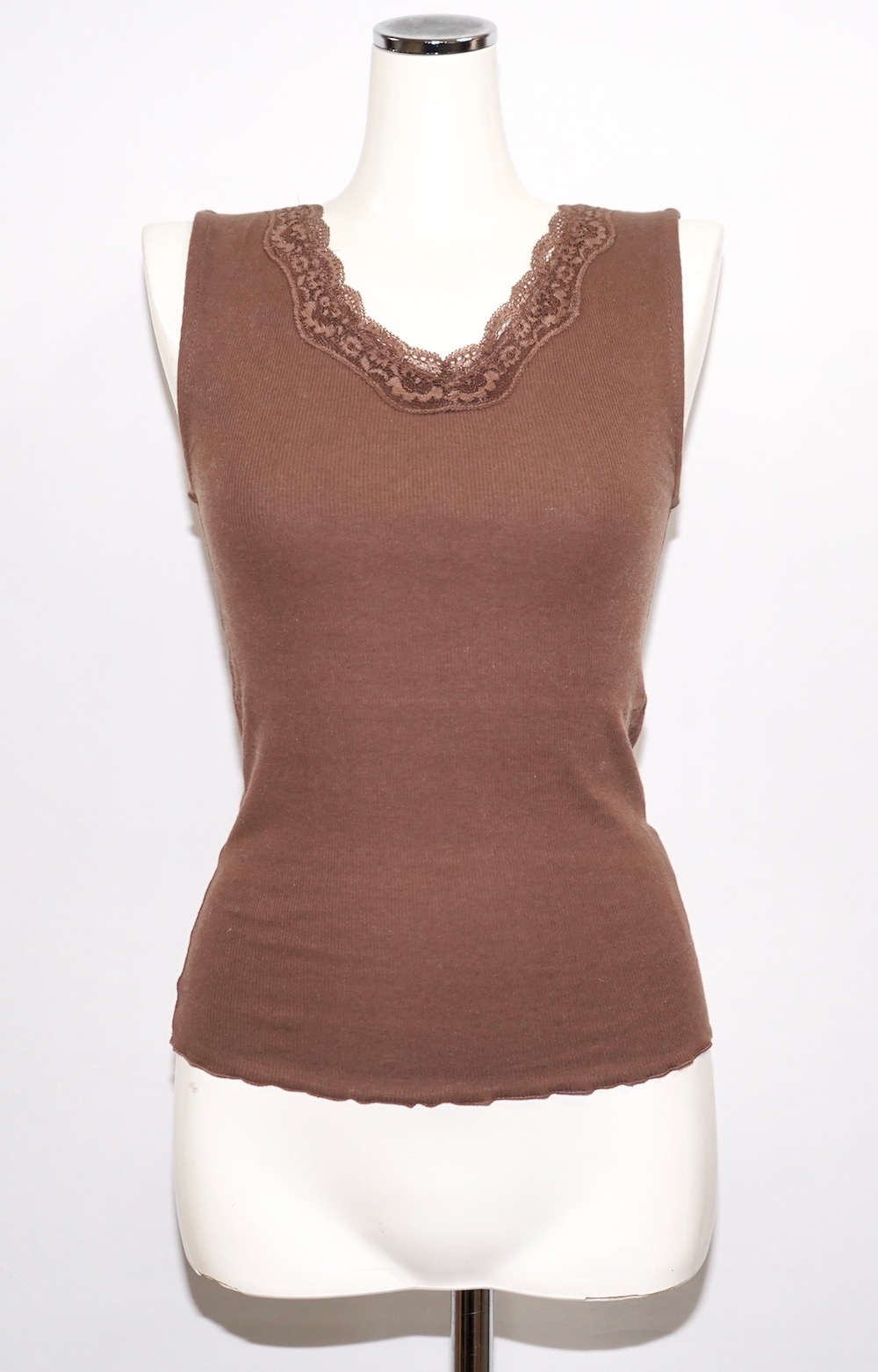 Lace Trim V-neck Rib Tank Top (brown)