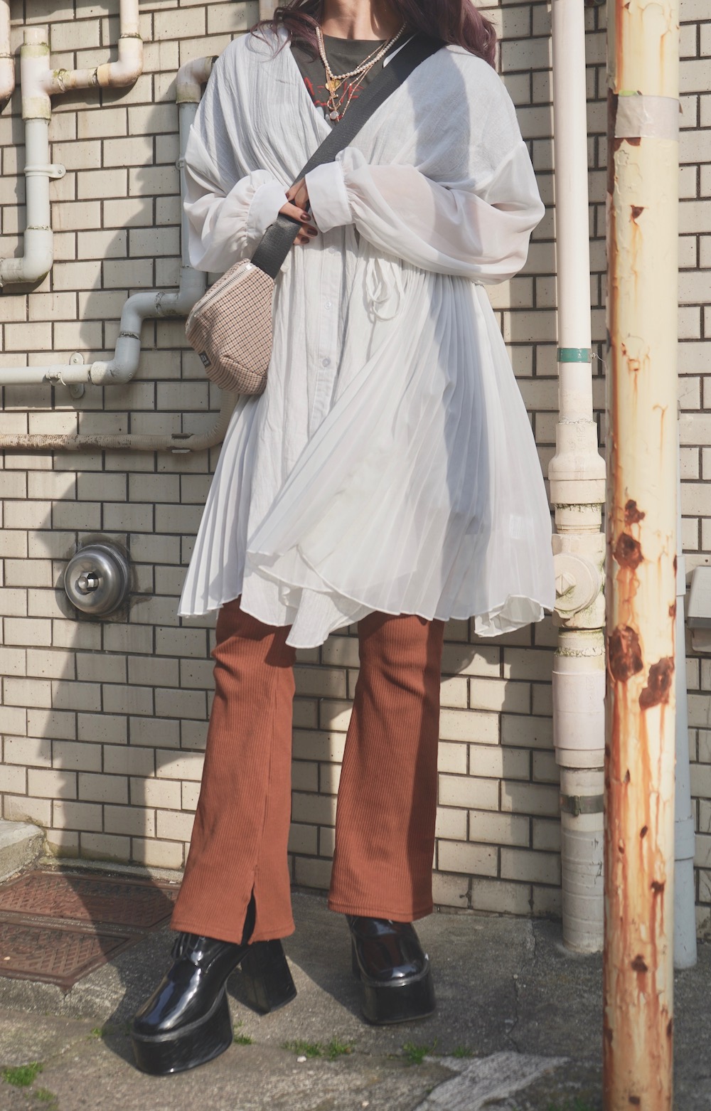 Rib Flare Slit Easy Pants (brown)