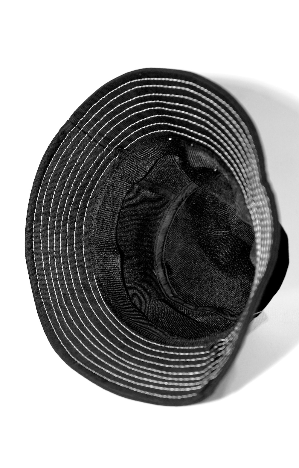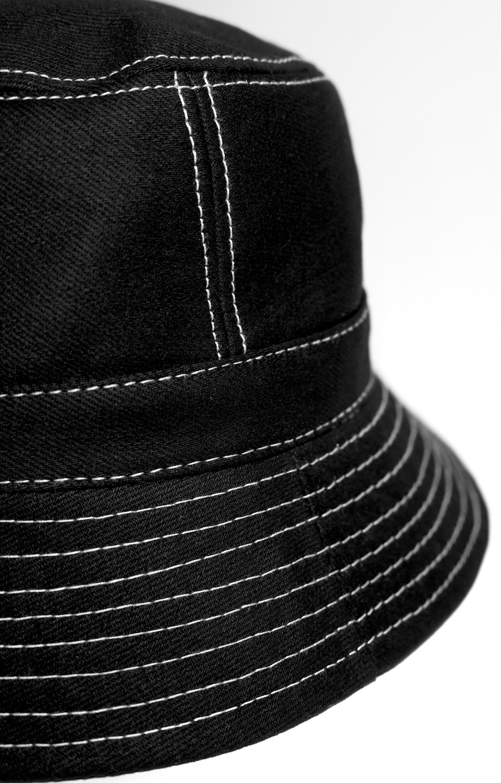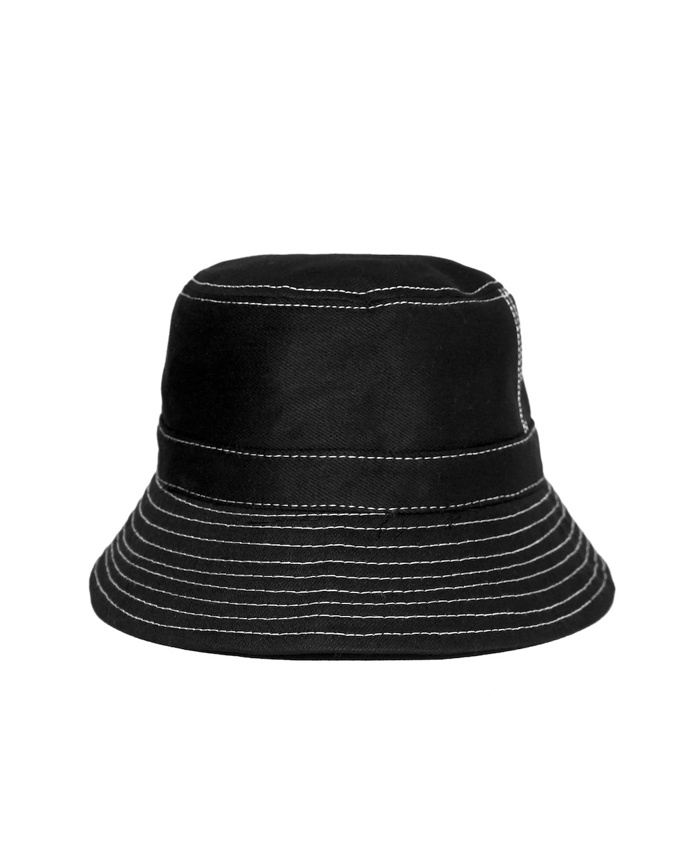 White Stitch Black Bucket Hat