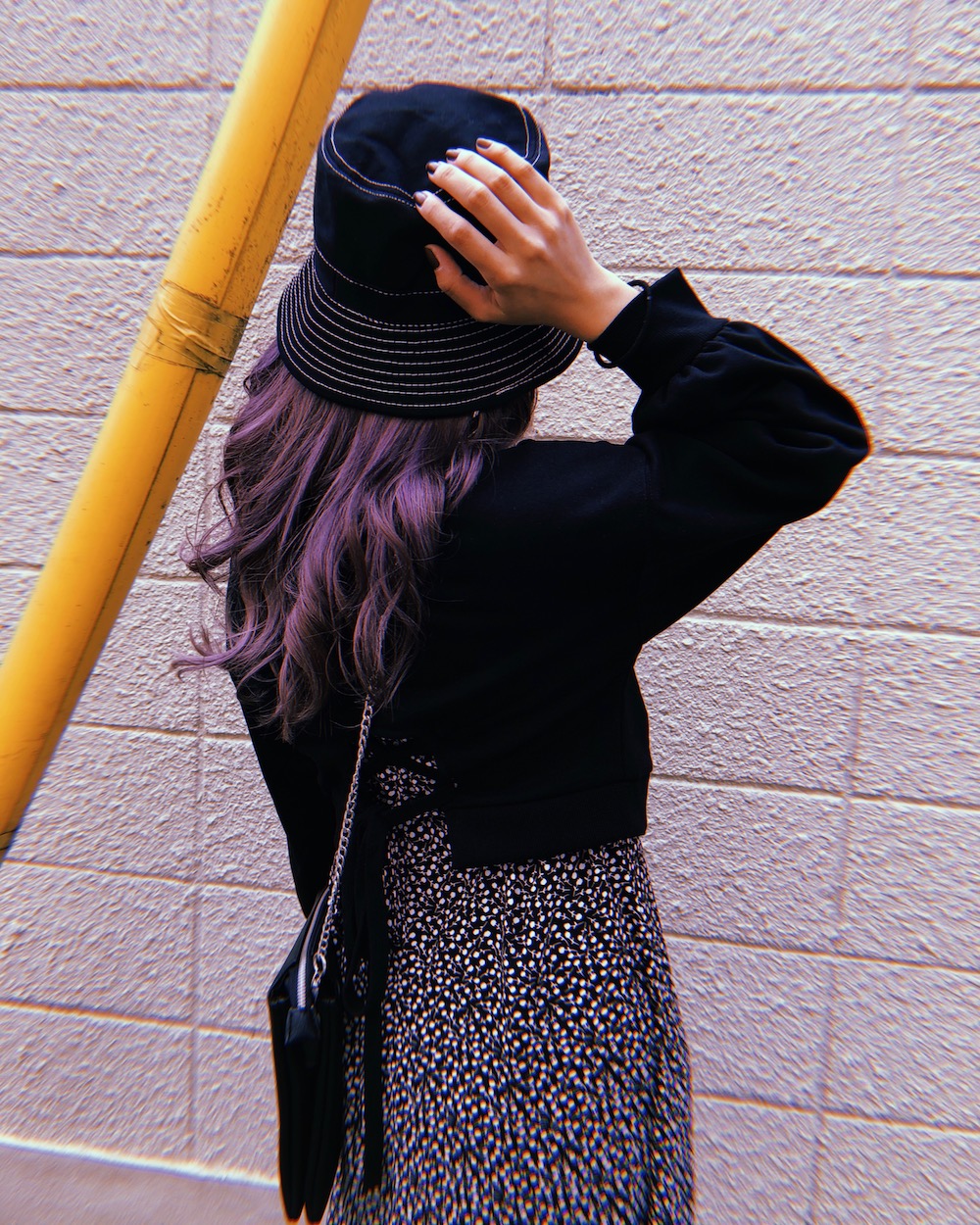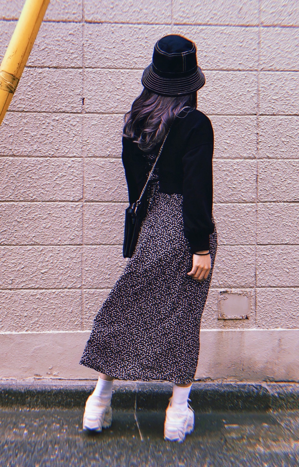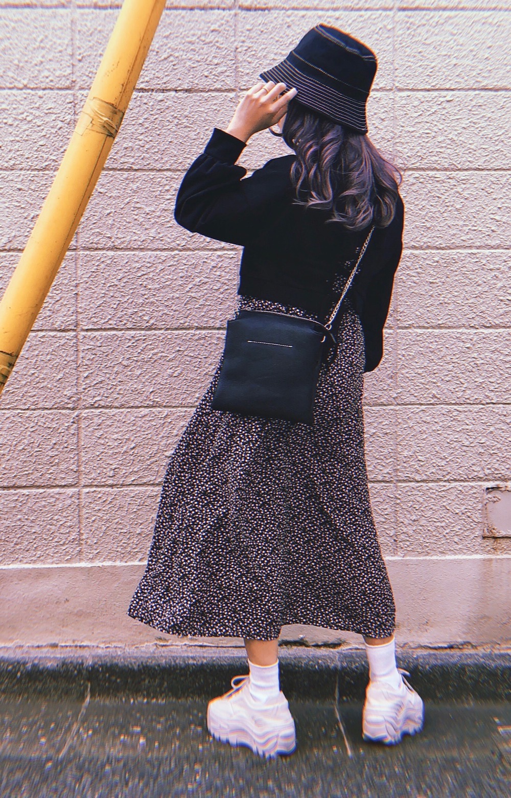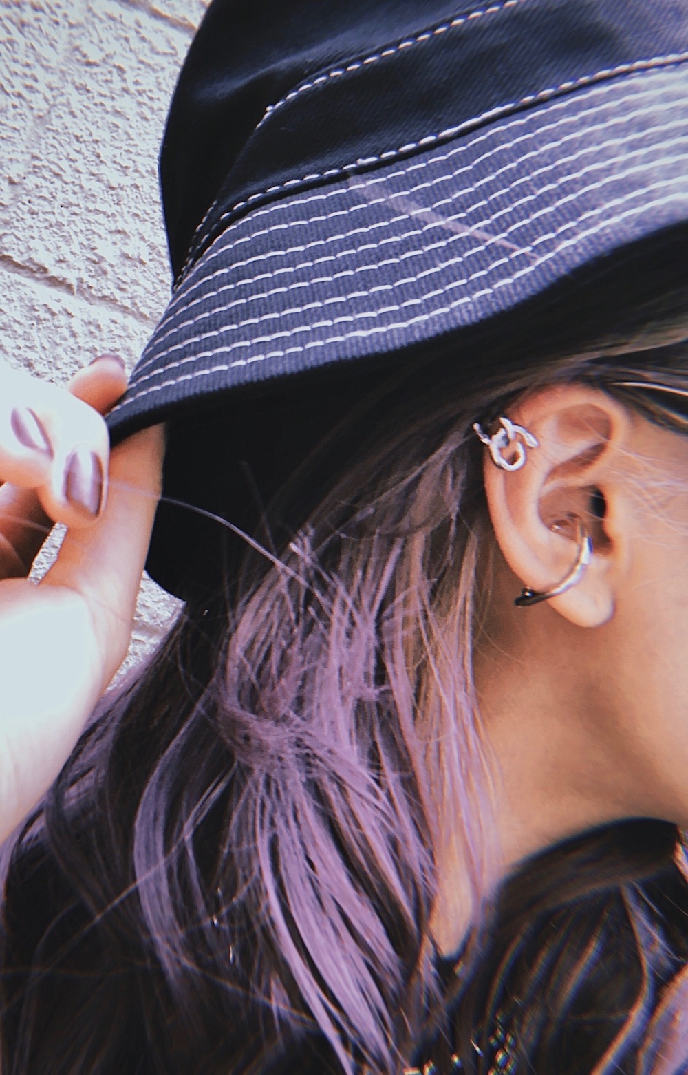 White Stitch Black Bucket Hat