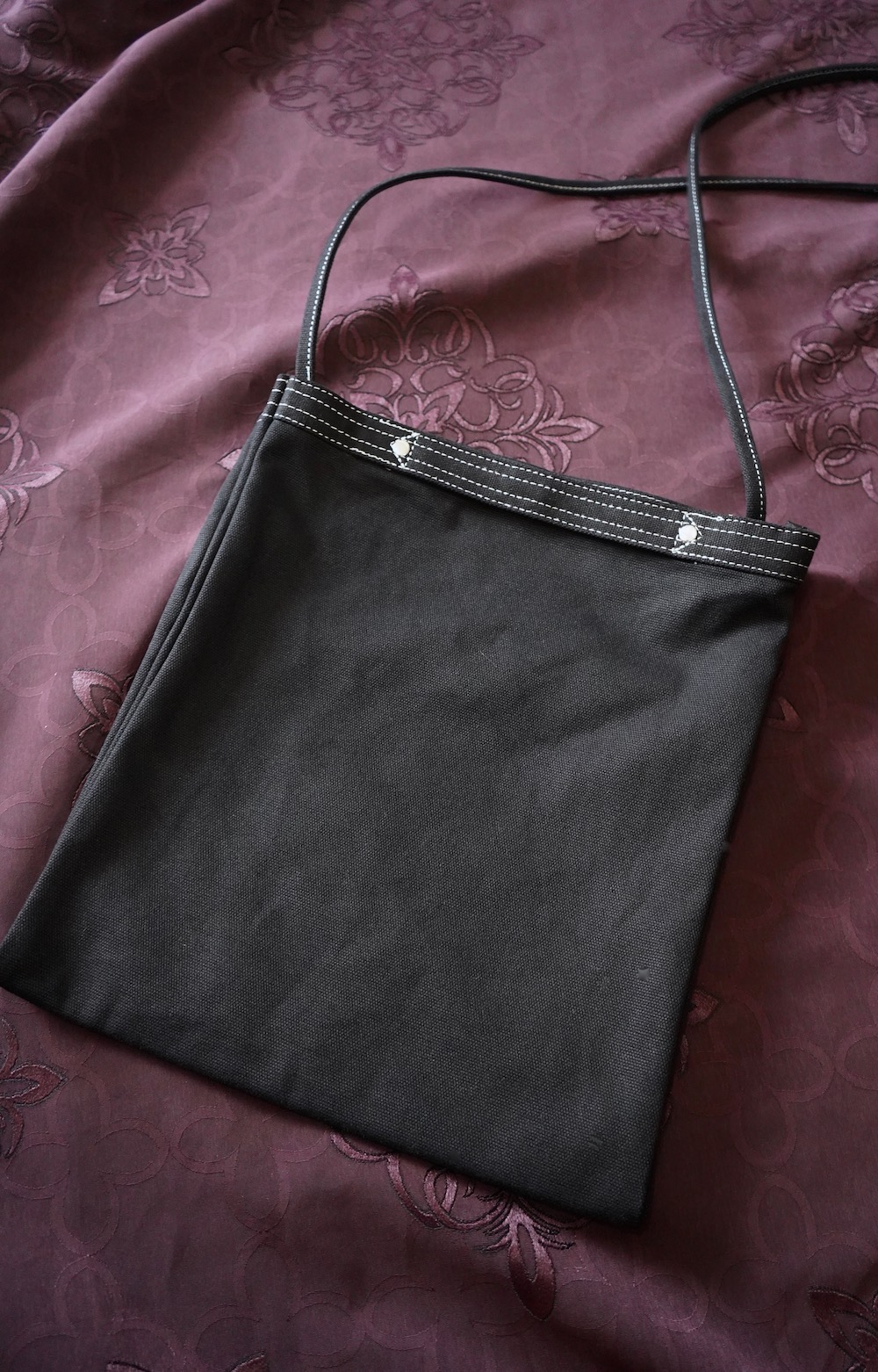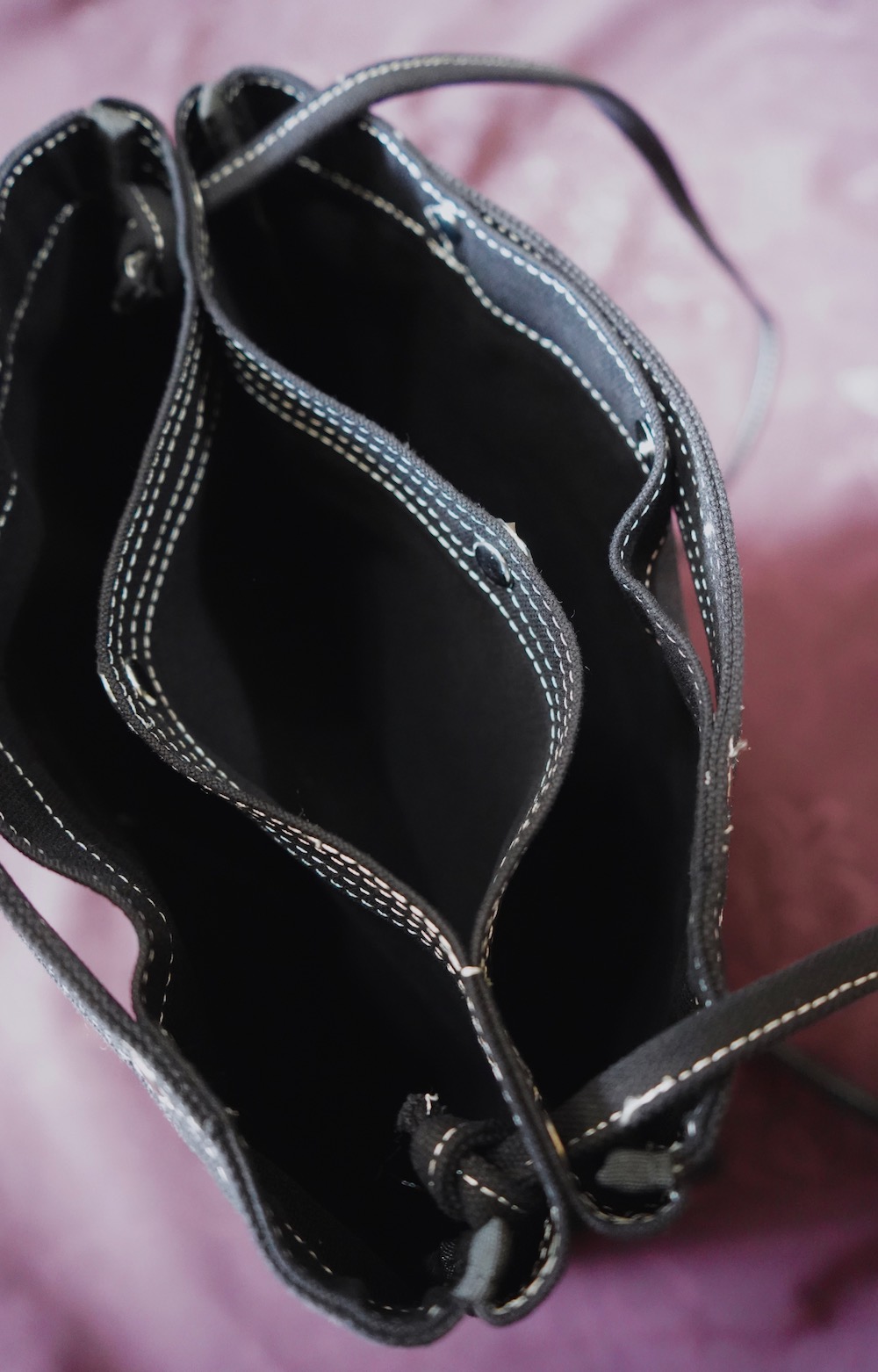 White Stitch Many Pocket Canvas Bag (black)