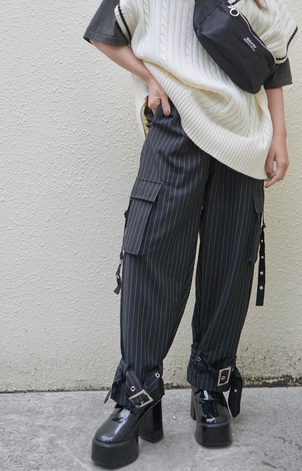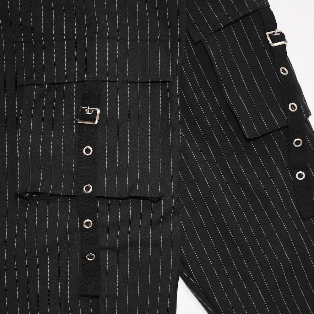 Eyelet Belt Design Cargo Pants(stripe)