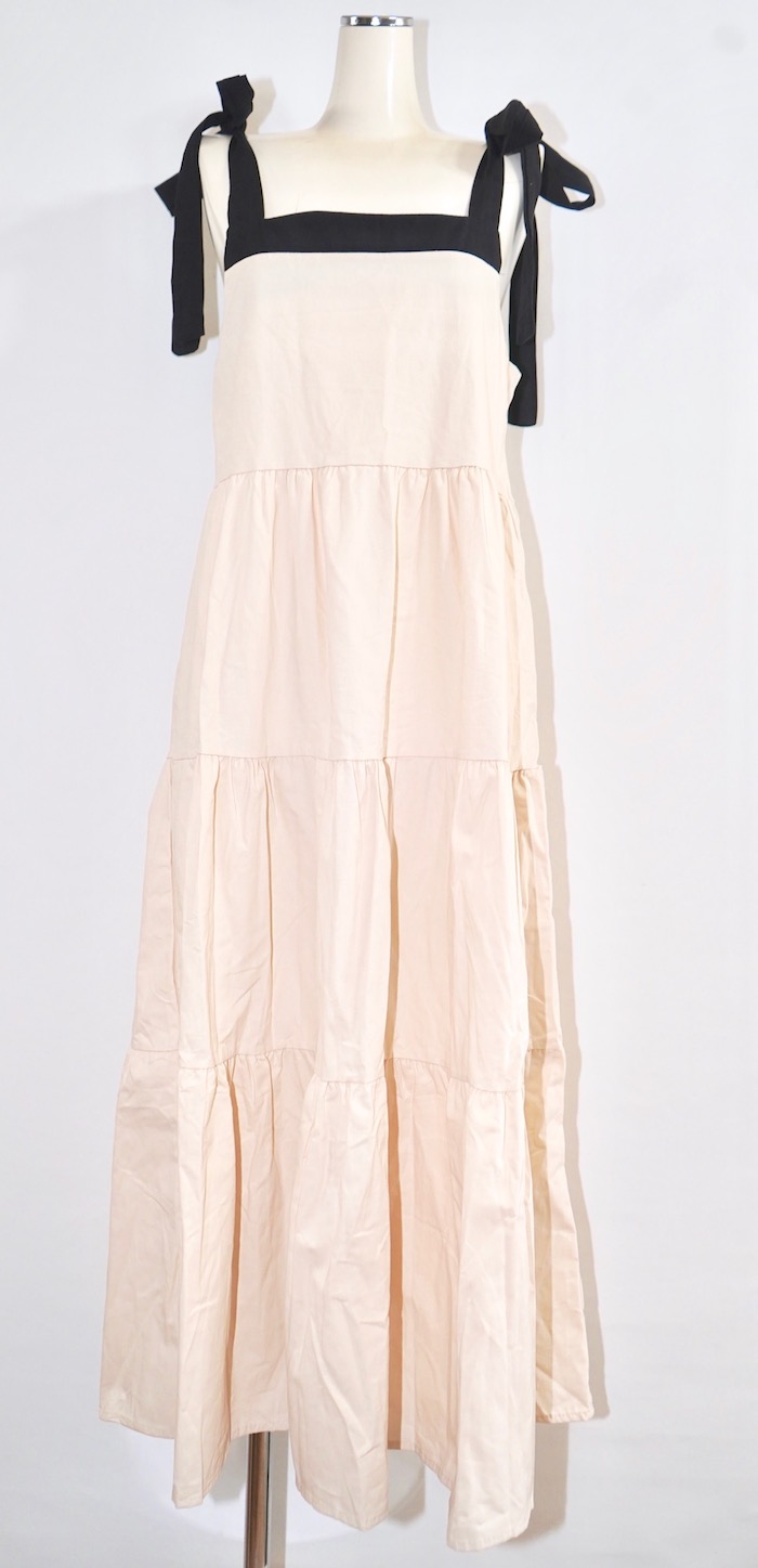 Ribbon Strap Tiered Cami-Onepiece (off white)
