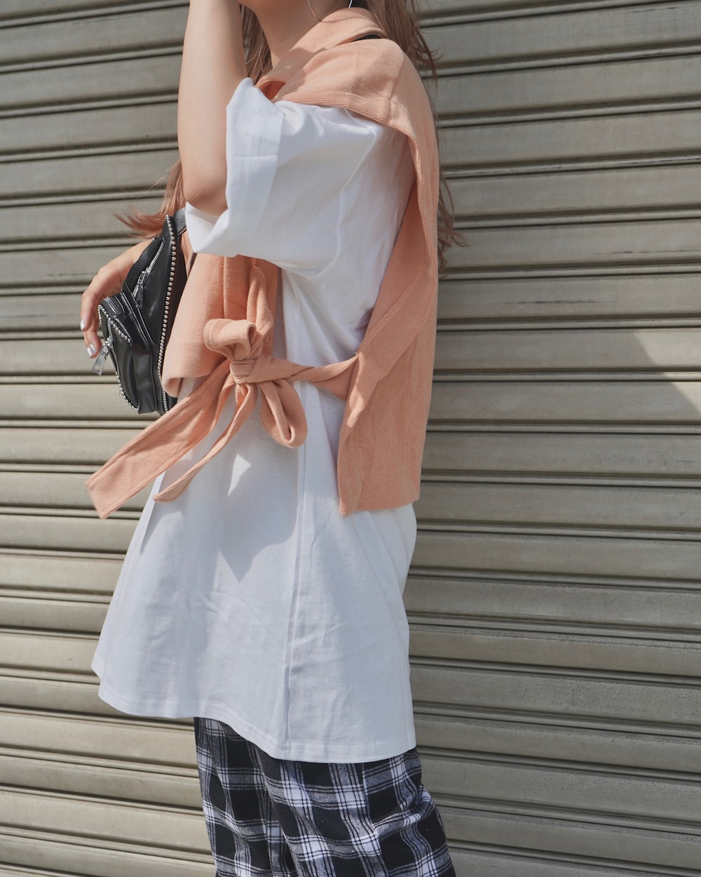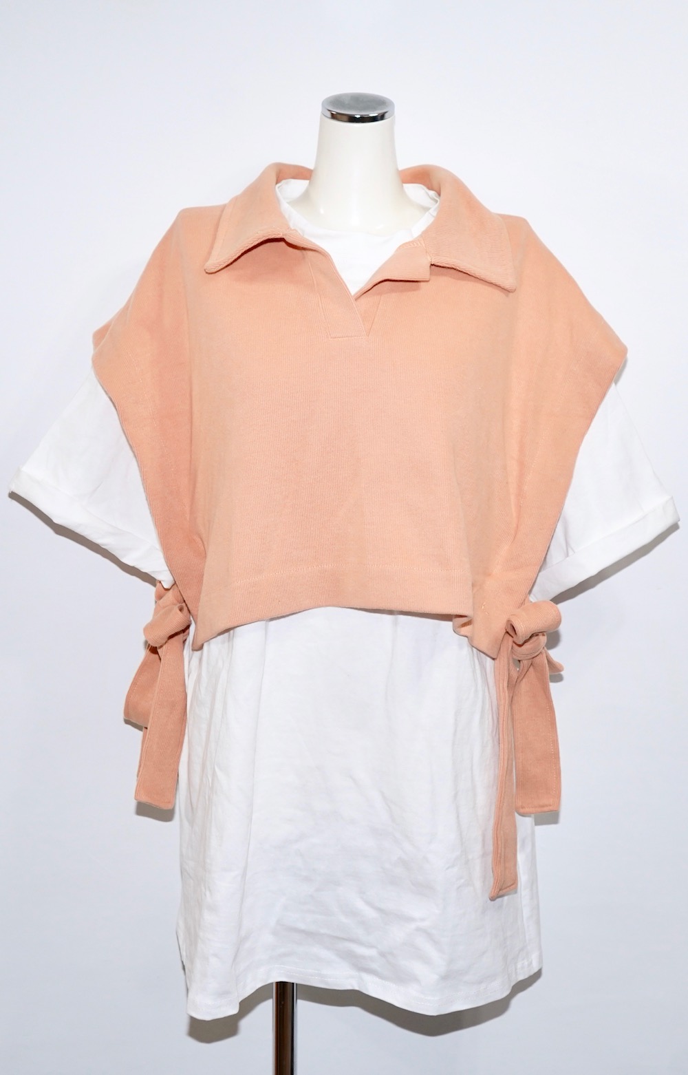Side Ribbon Vest+T-shirts Onepiece 2P SET (sherbet orange)