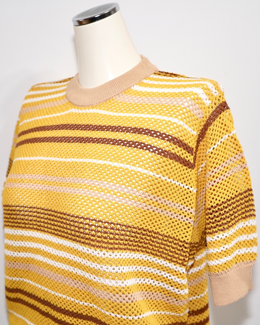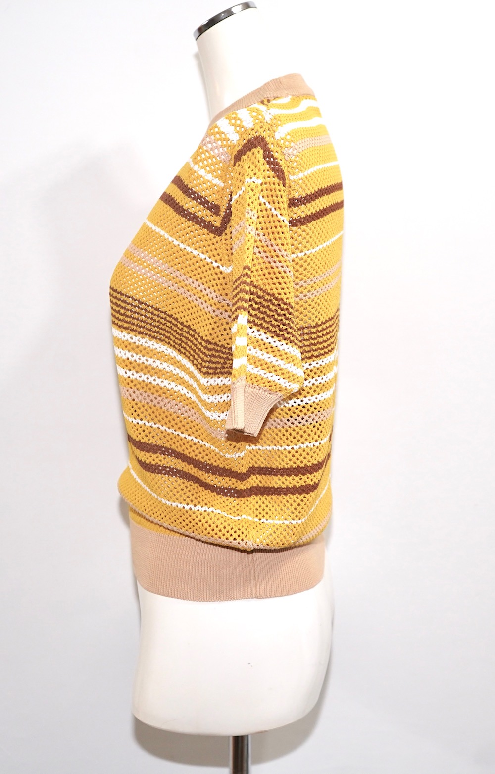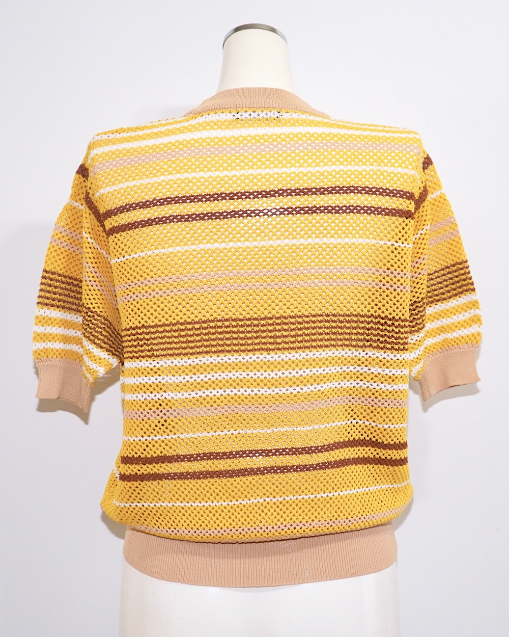 Multi Color Border S/S Knit Tops (mustard-brown)