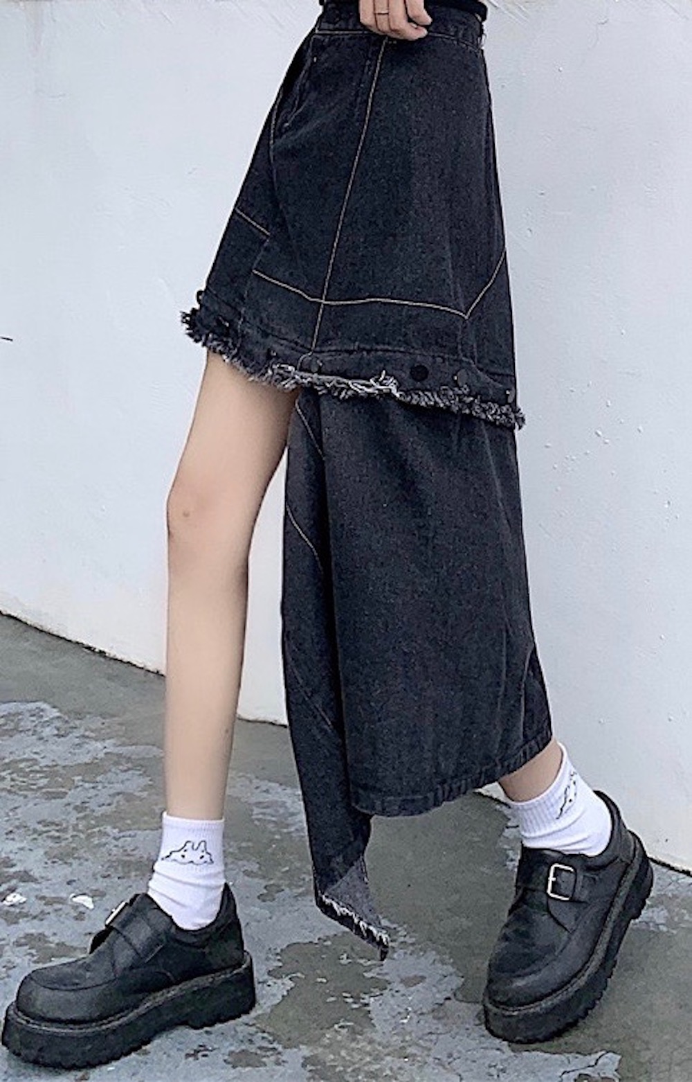 2way Switching Black Denim Skirt