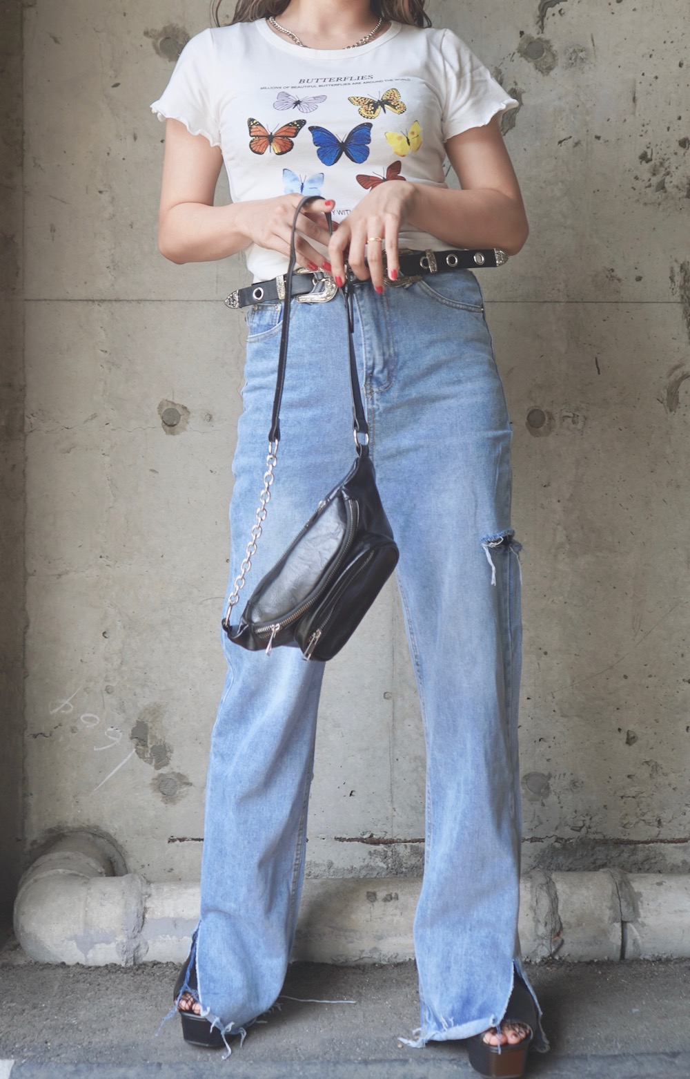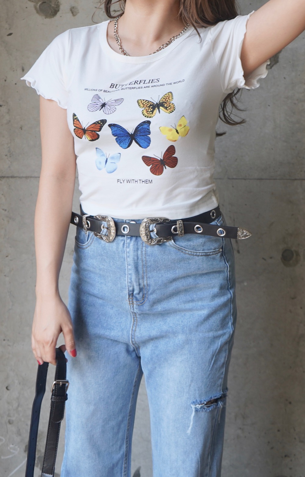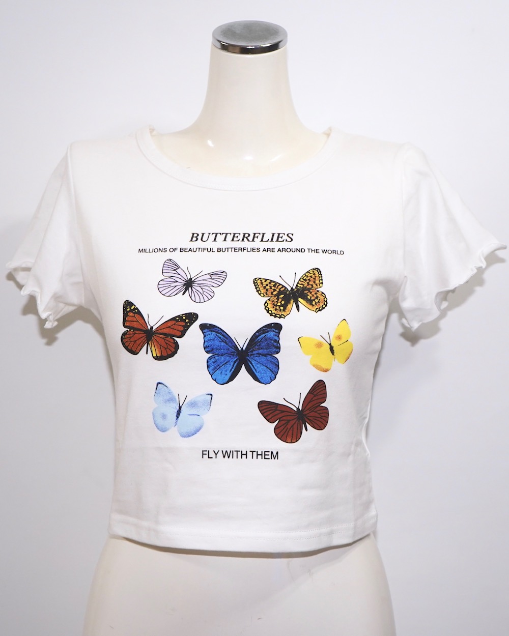 Butterflies Frill Sleeve S/S Tops (white)