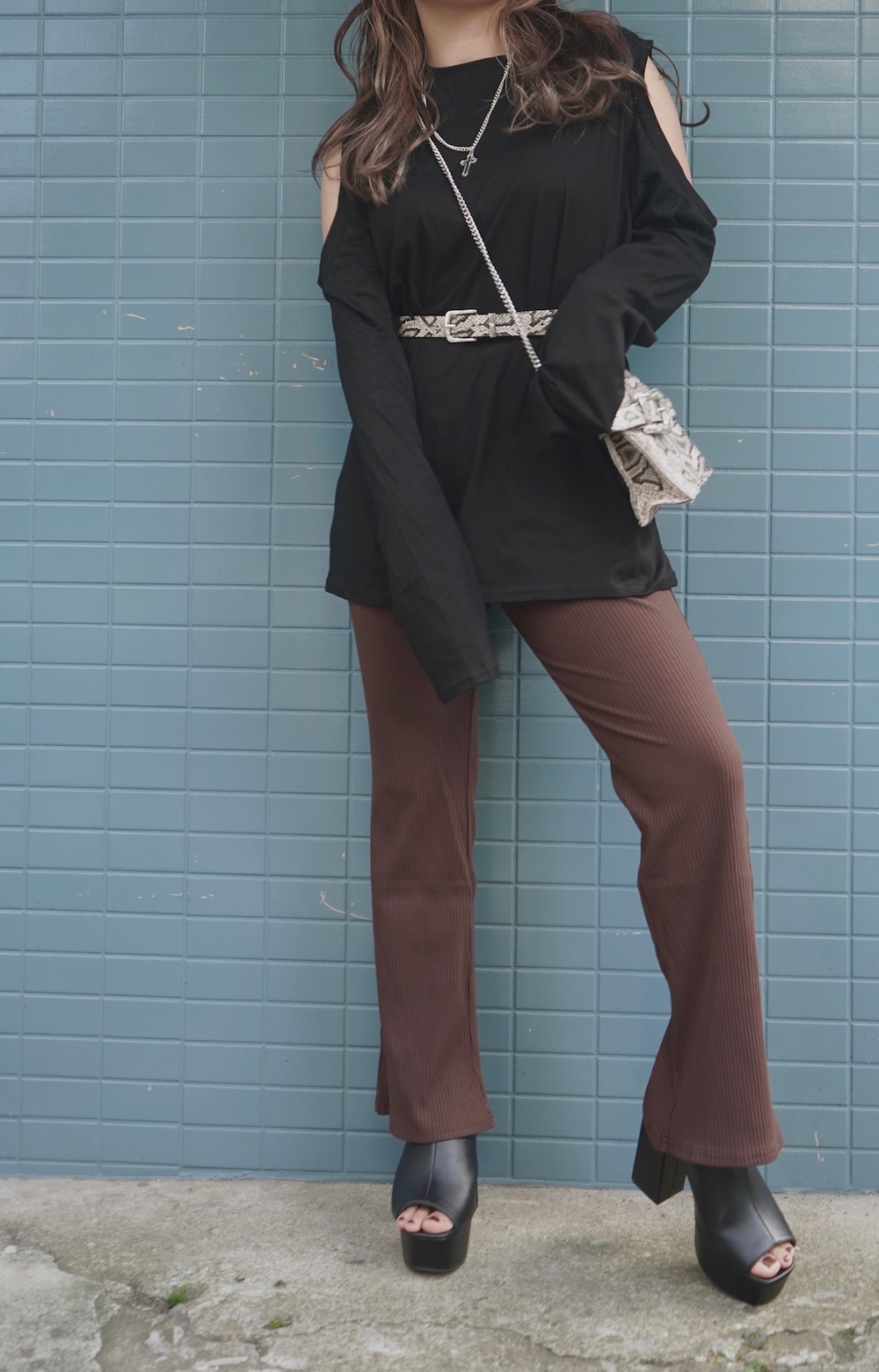 Open Shoulder L/S T-shirts (black)