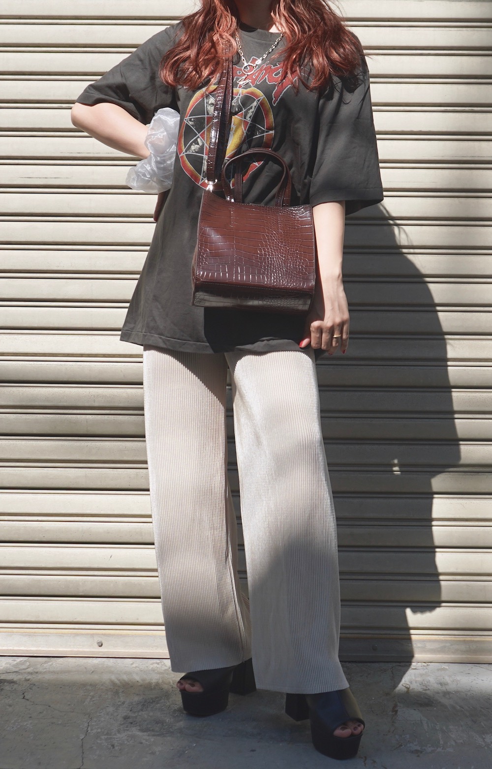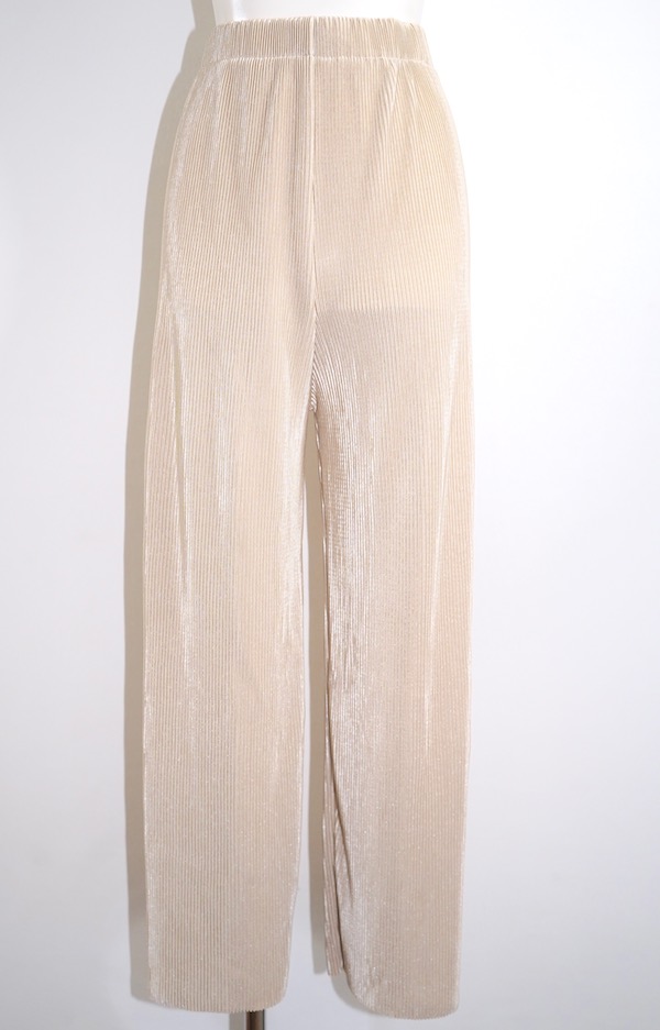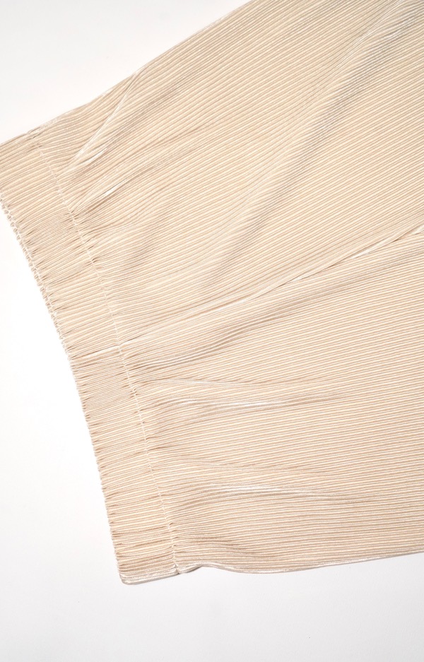 Shiny Pleats Wide Pants (white beige)