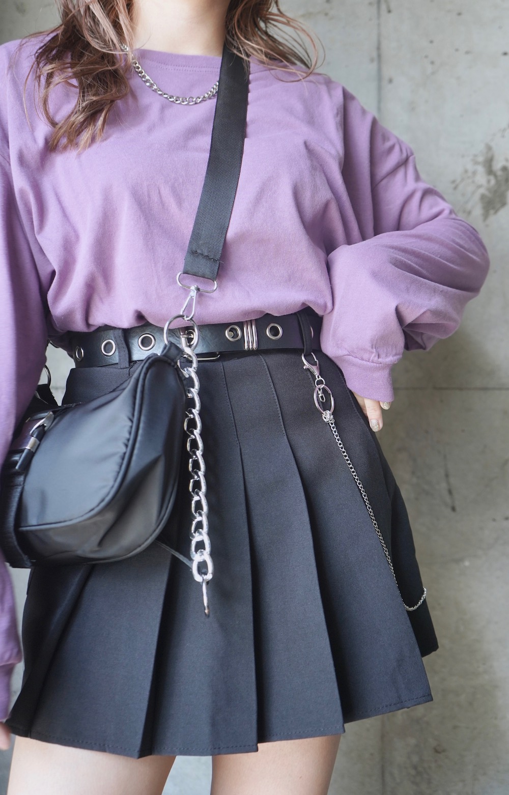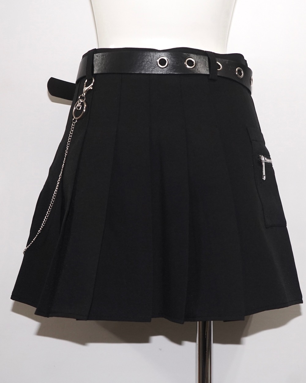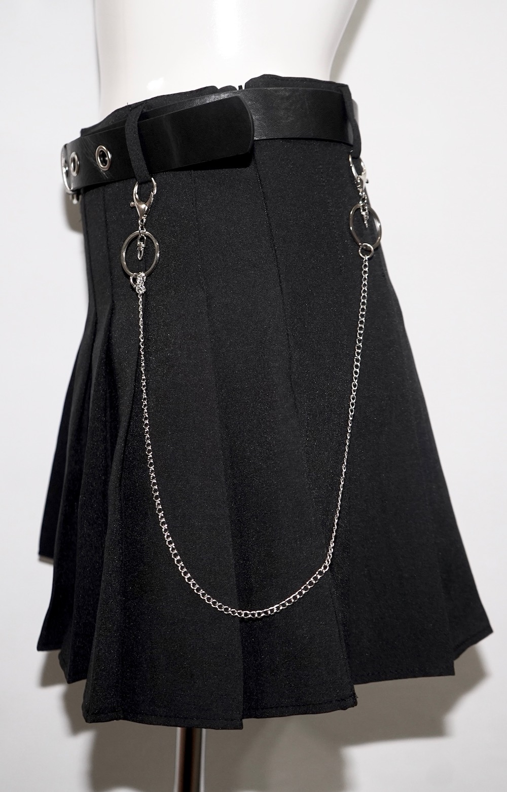 Black Box Pleats Mini Skirt *silver chain&eyelet belt SET