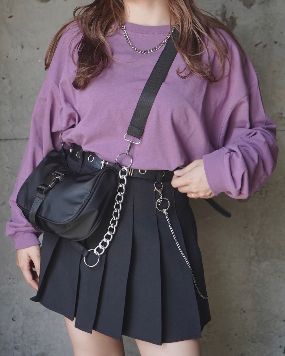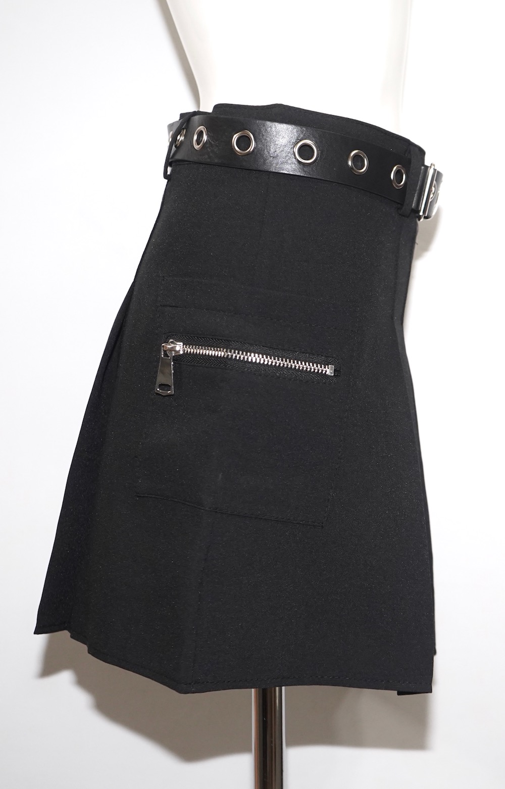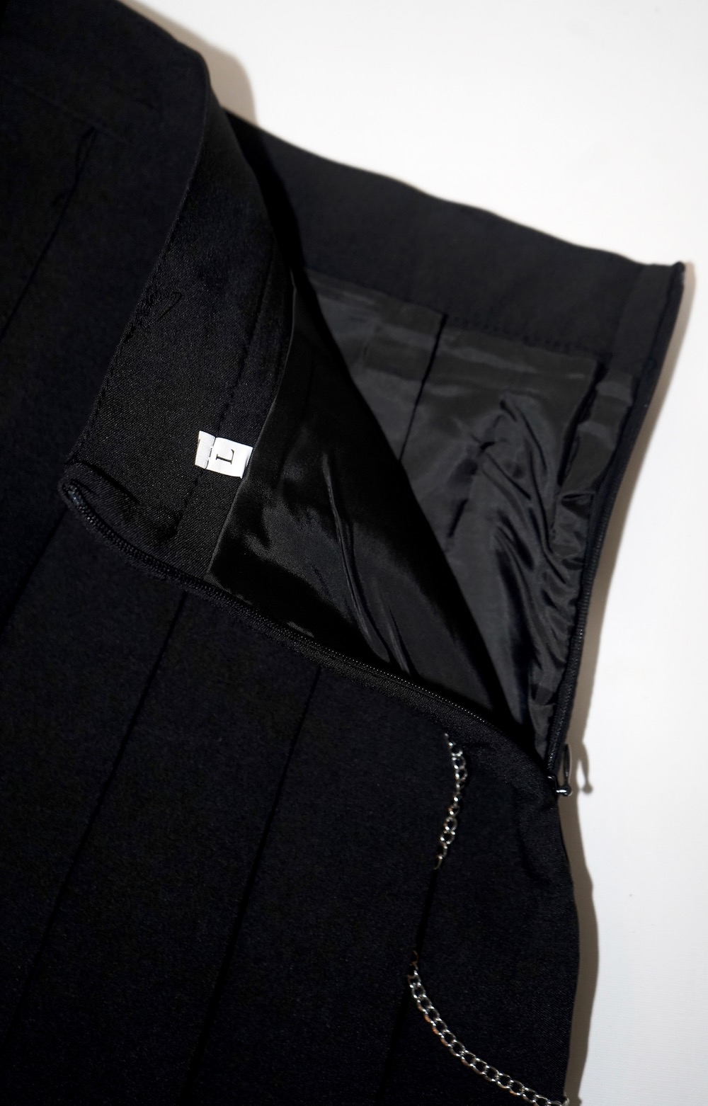 Black Box Pleats Mini Skirt *silver chain&eyelet belt SET