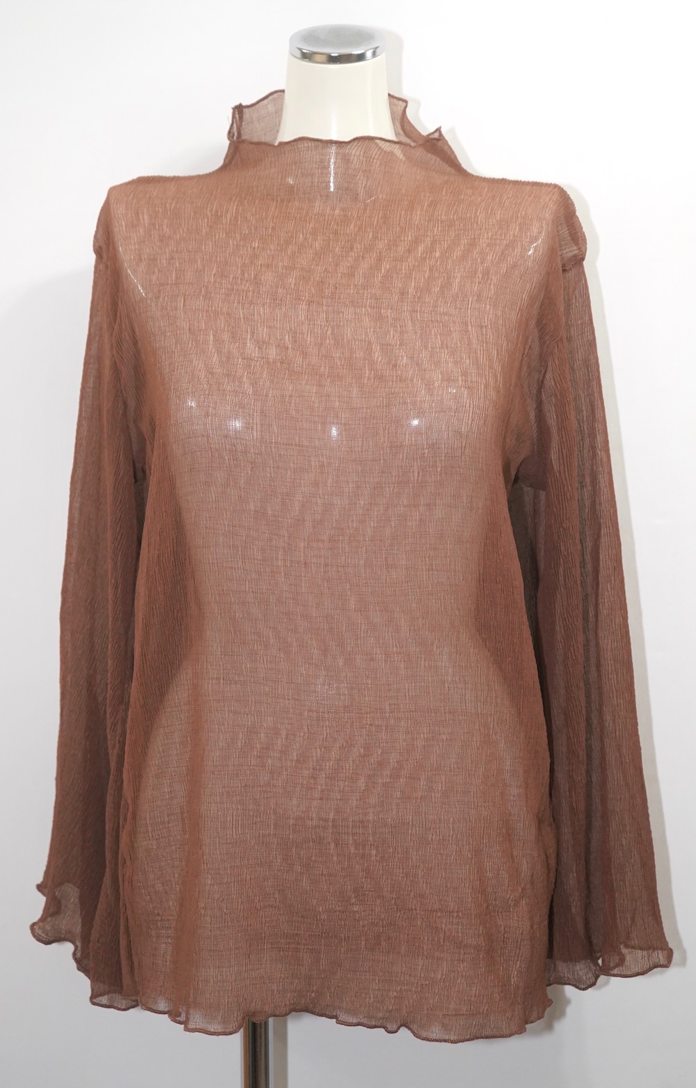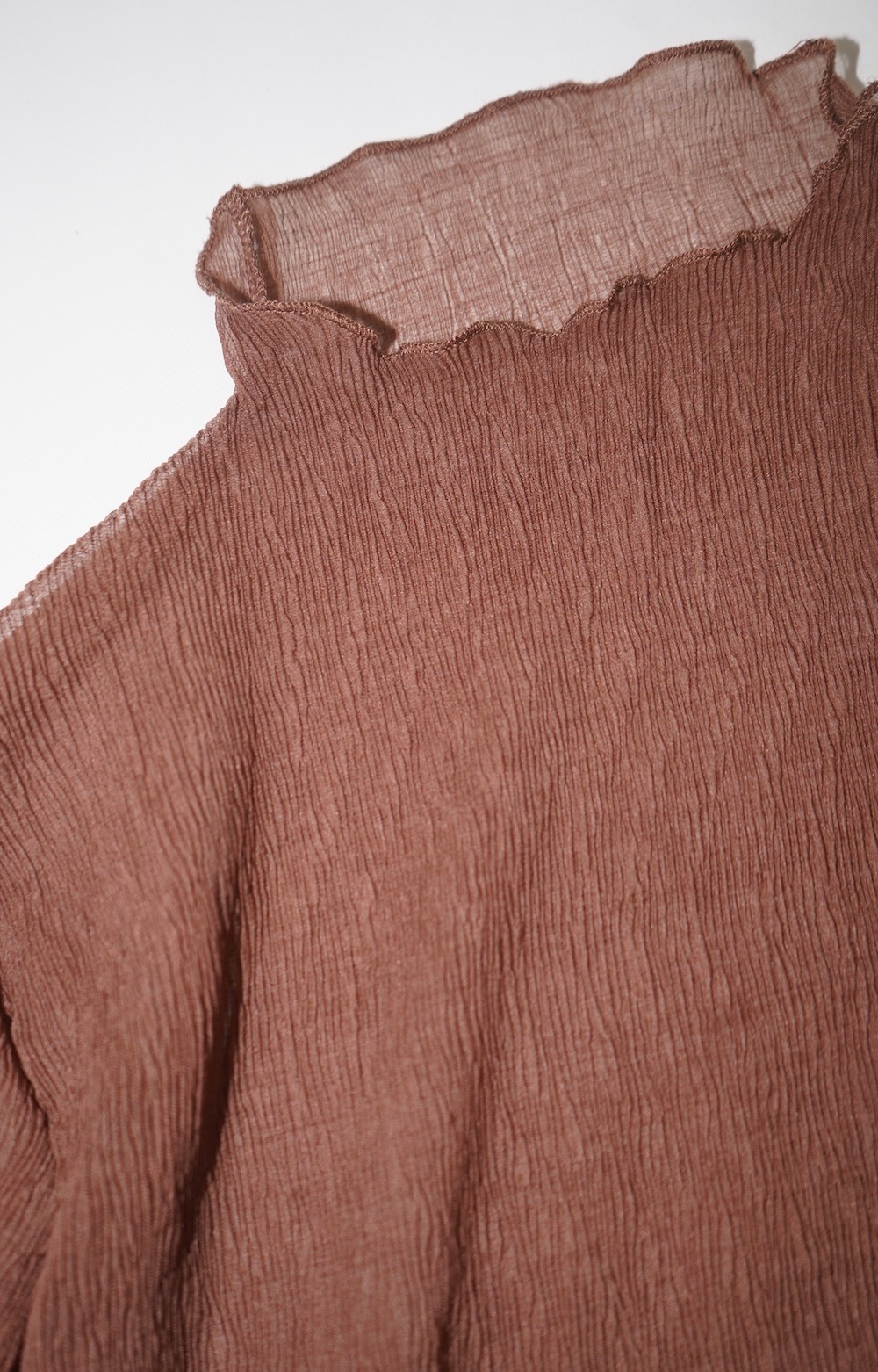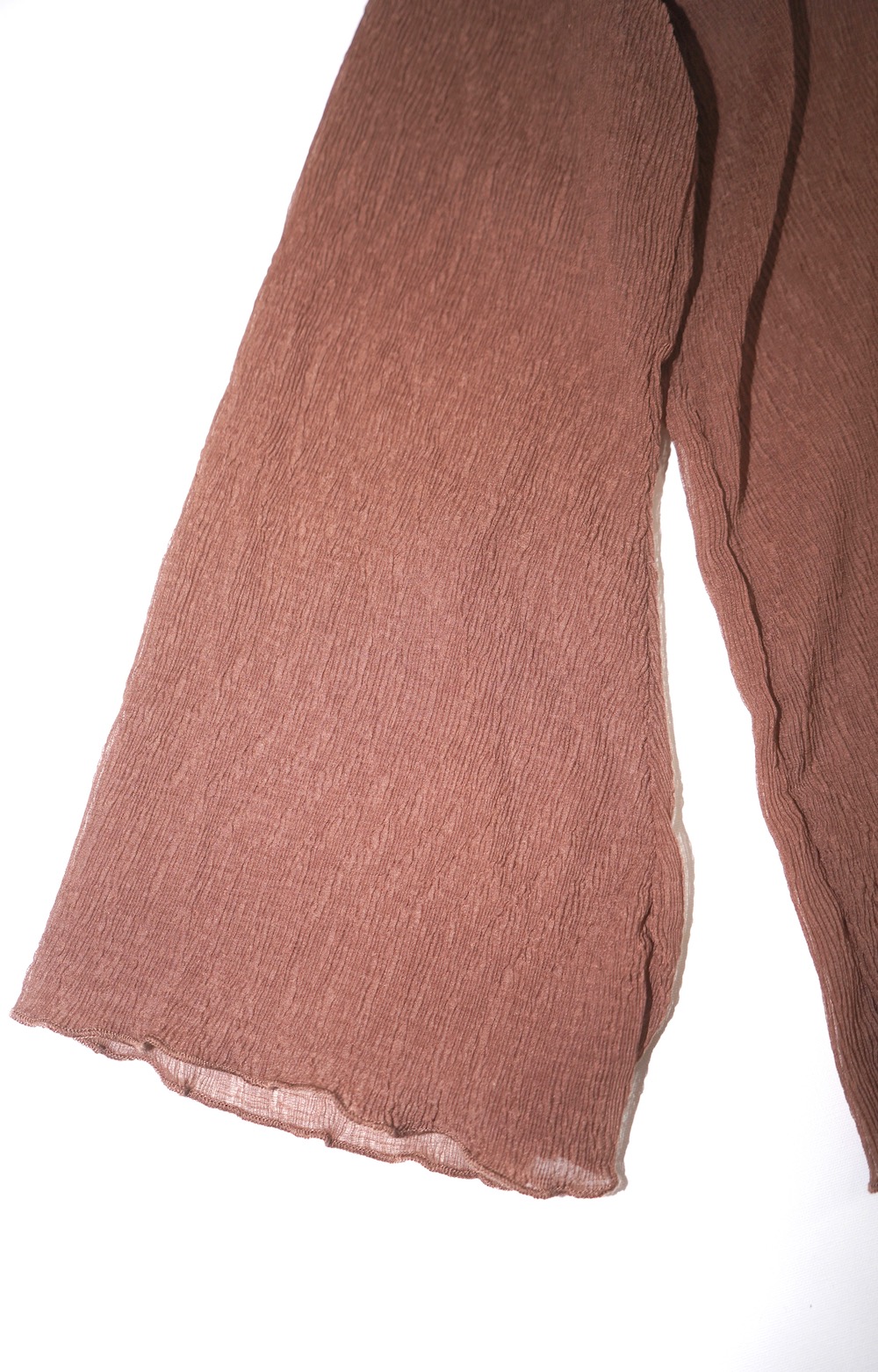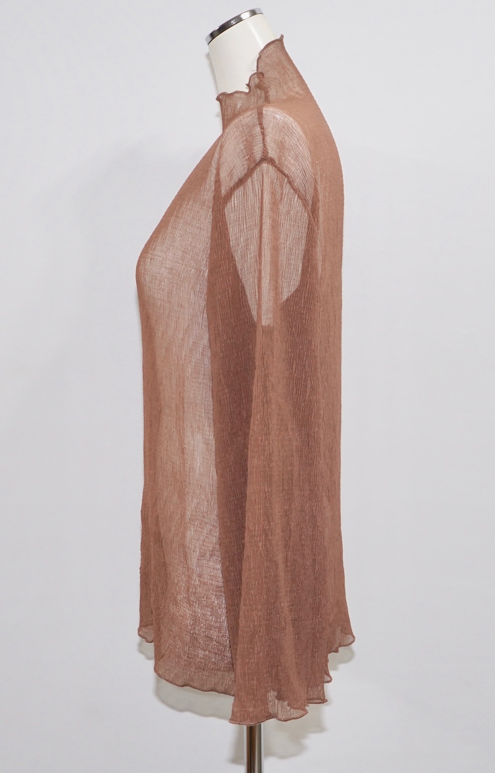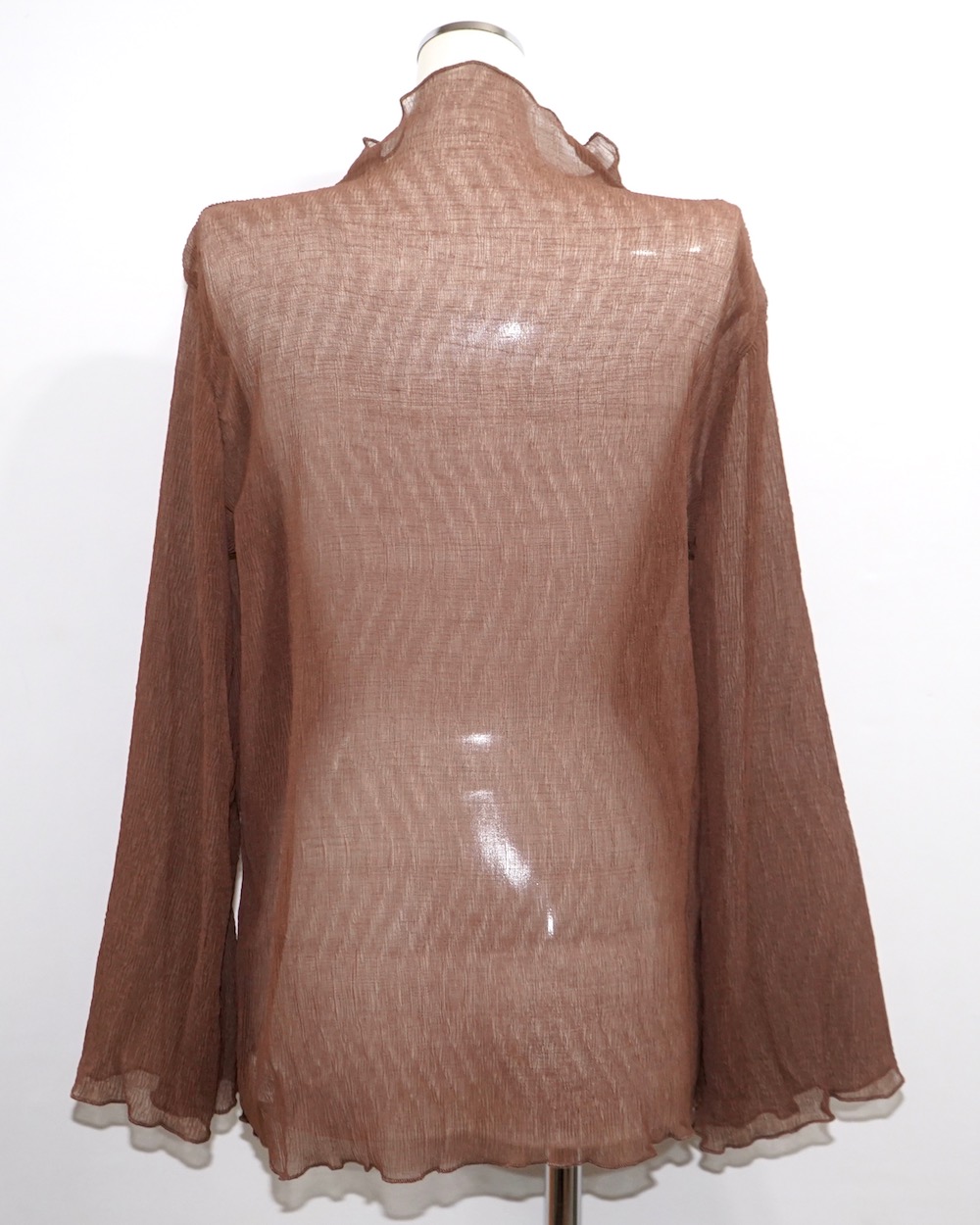 Crinkle Sheer Bell Sleeve Tops (brown)