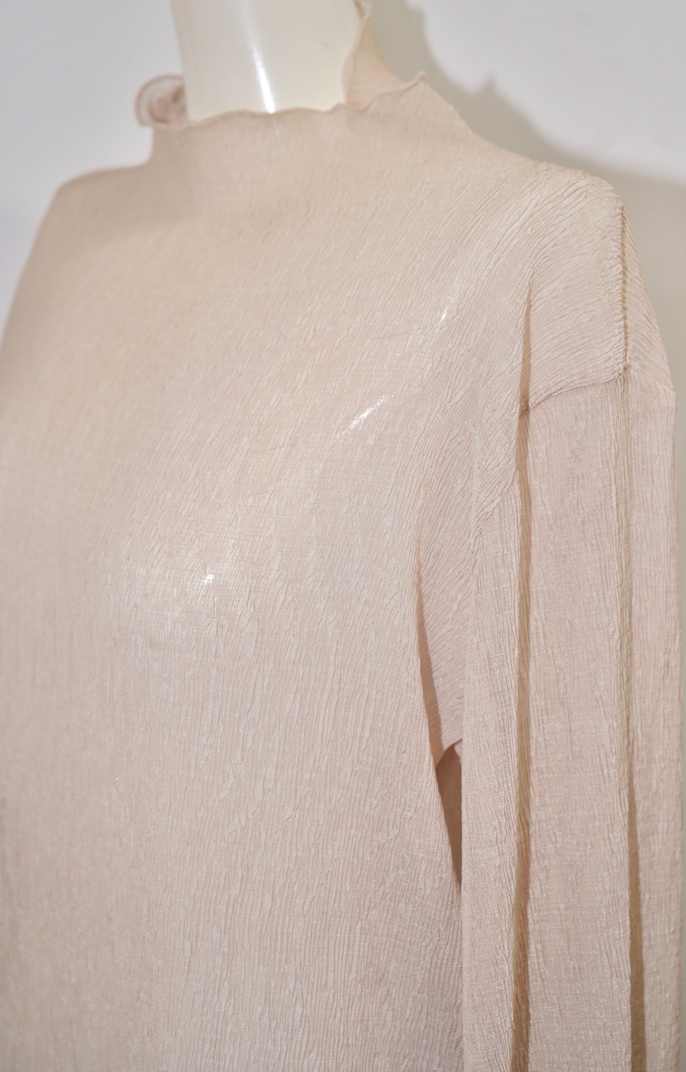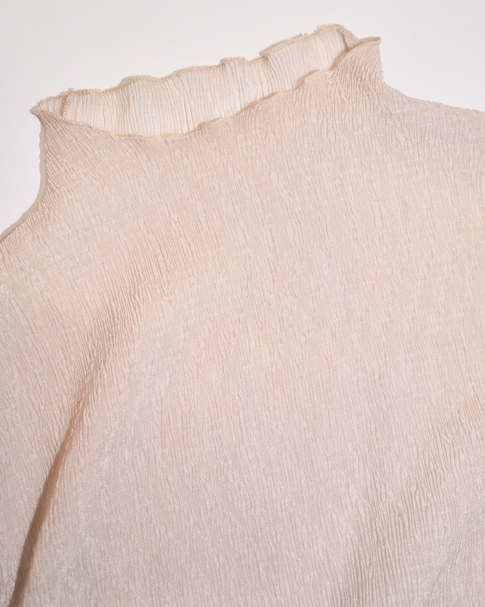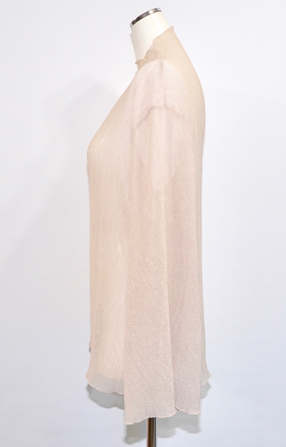 Crinkle Sheer Bell Sleeve Tops (beige)