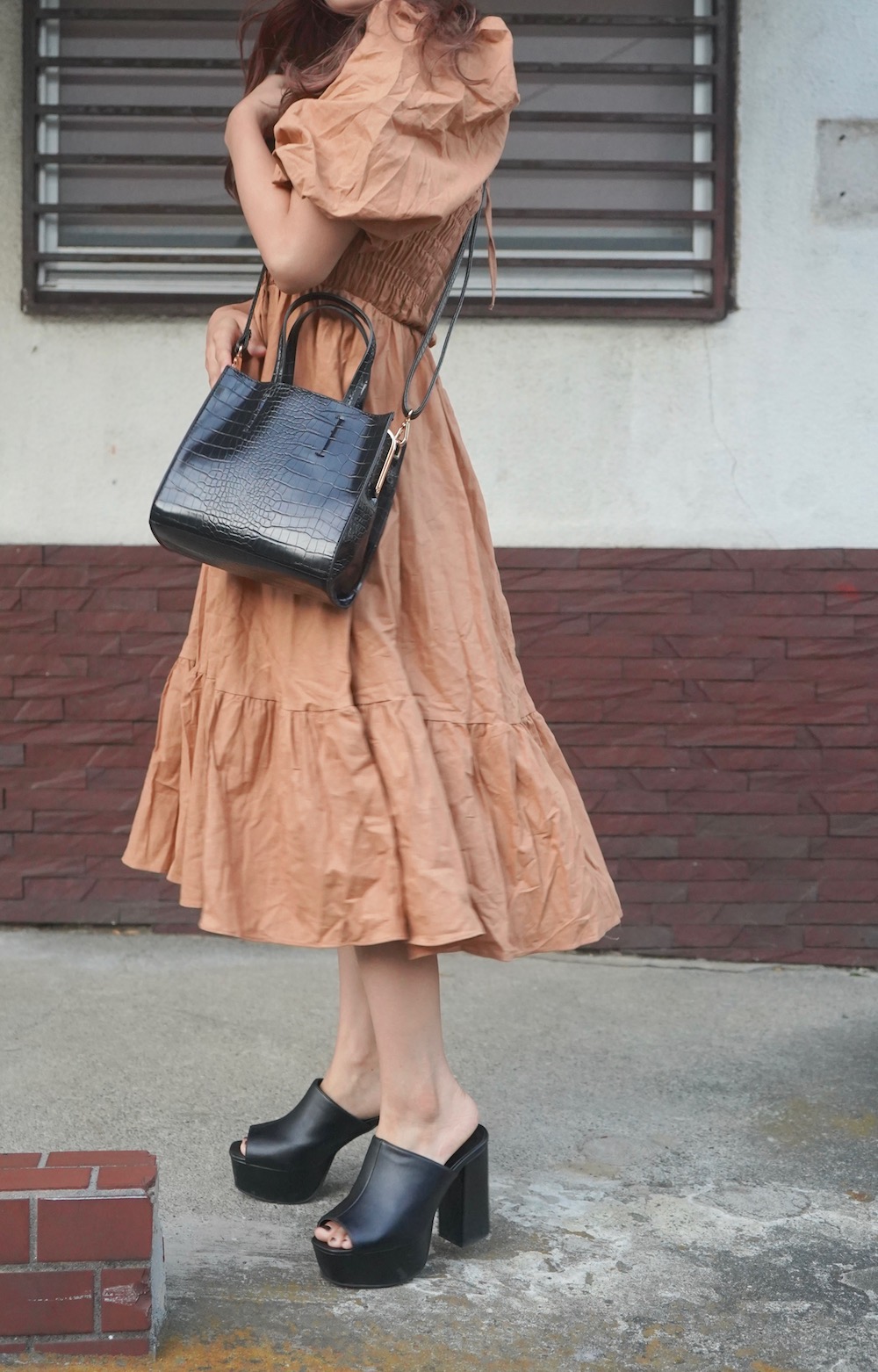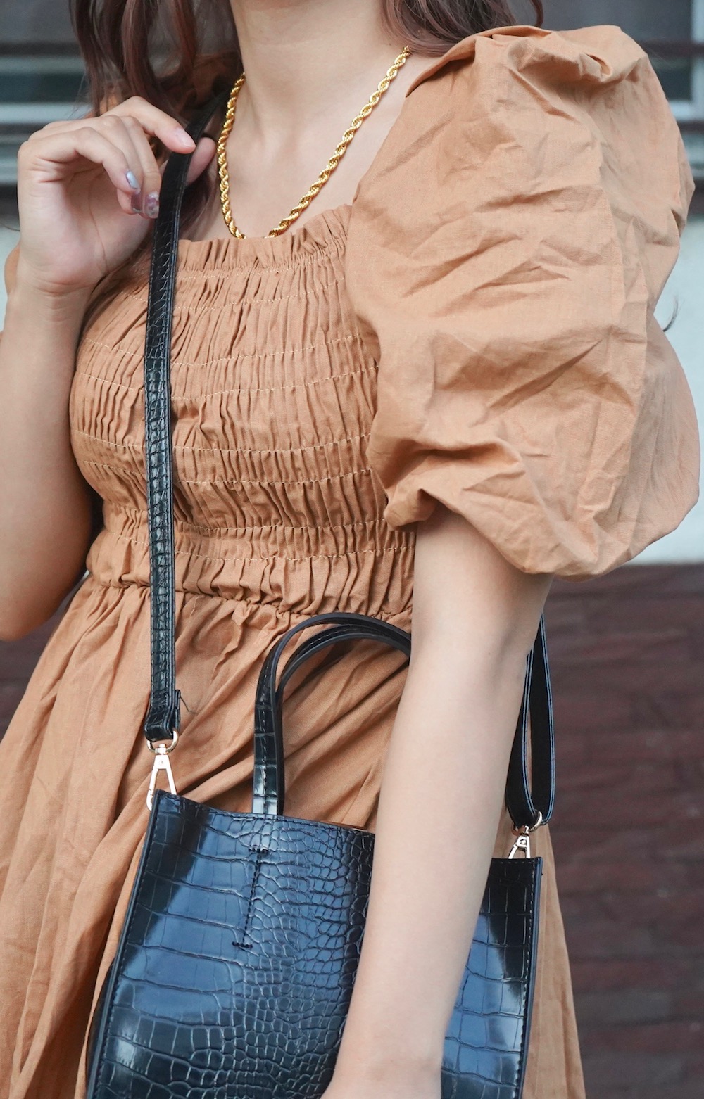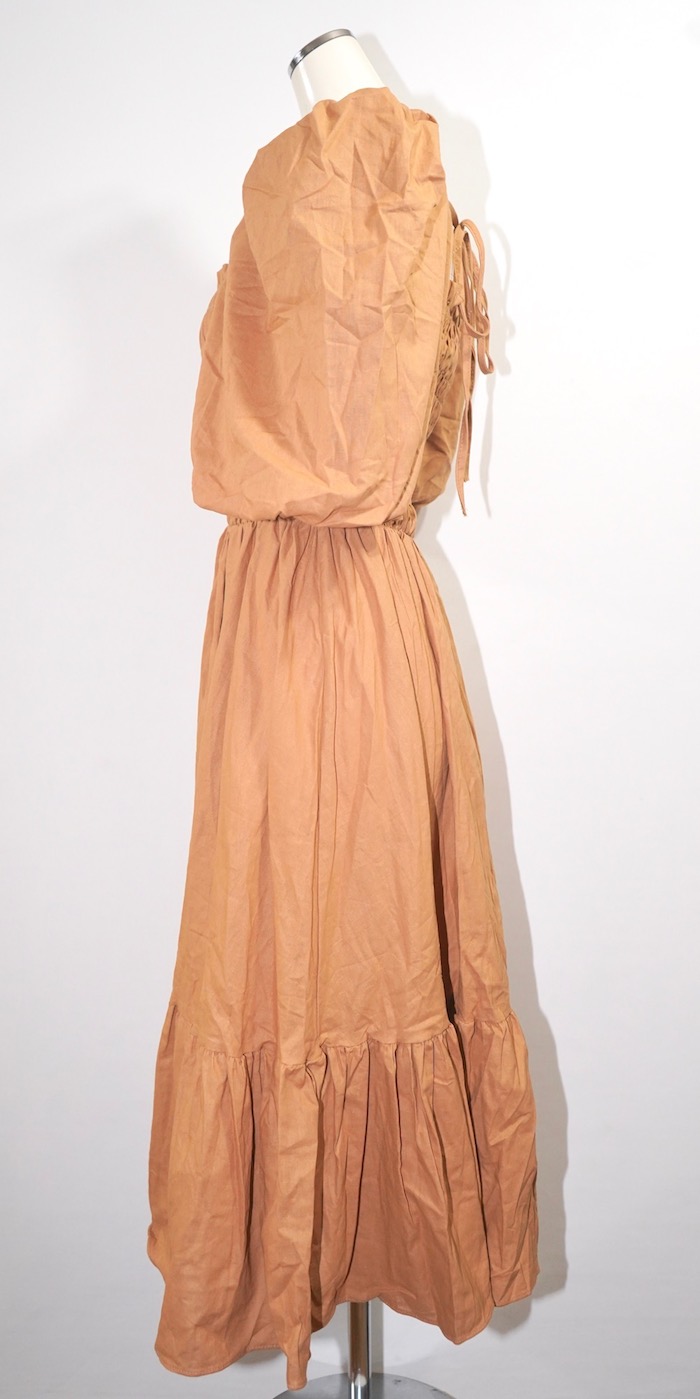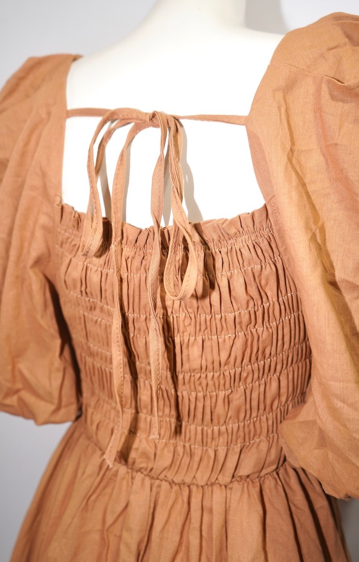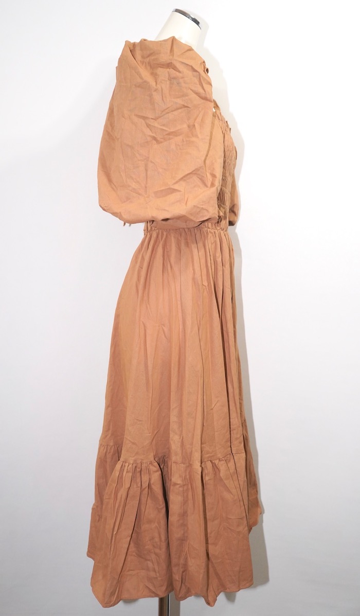 Puffsleeve Switching Shirring Onepiece (light brown)
