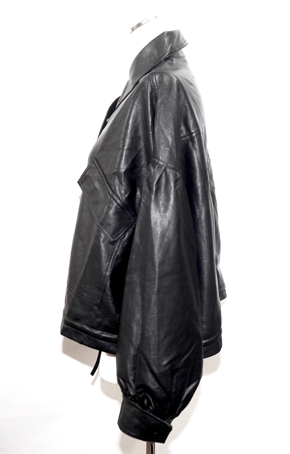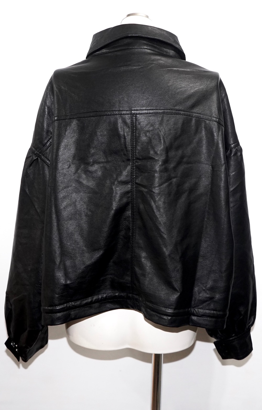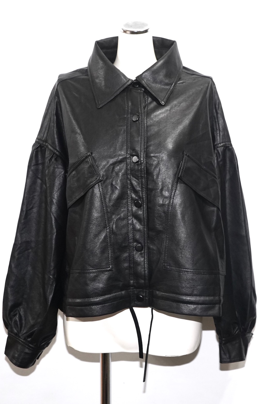 Balloon Sleeve Leather Touch Jacket Coat (black)