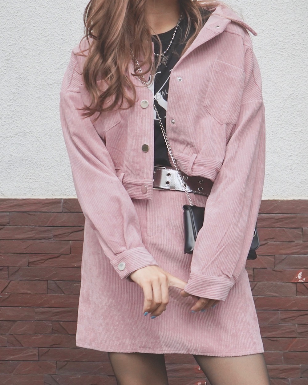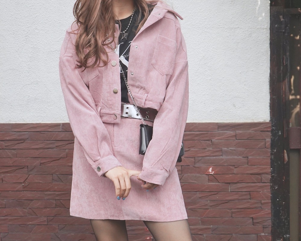 Corduroy Jacket+Skirt 2P SET UP (light pink)
