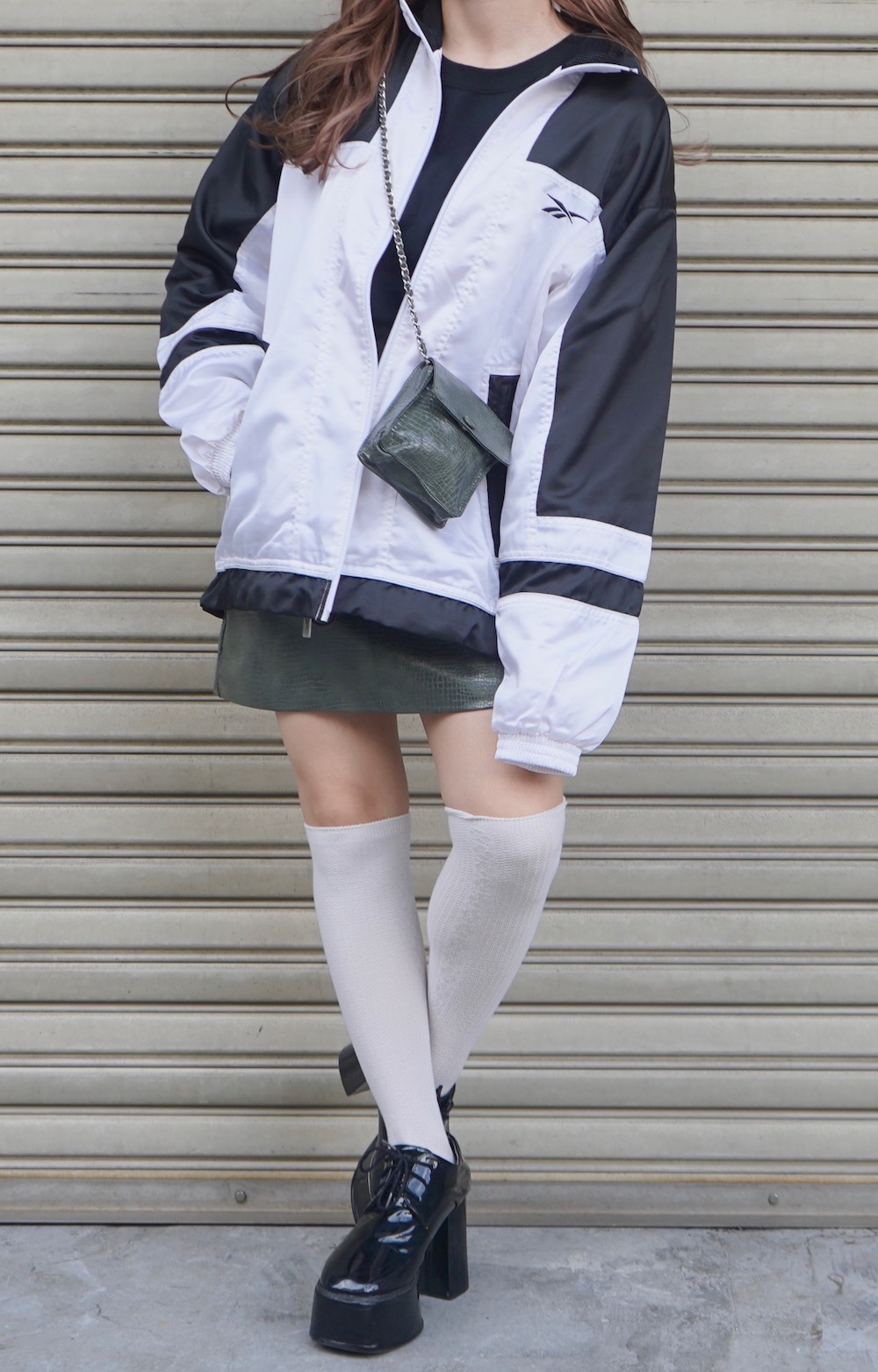 REEBOK Bi-Color 1point Logo Nylon Jacket(black/white)