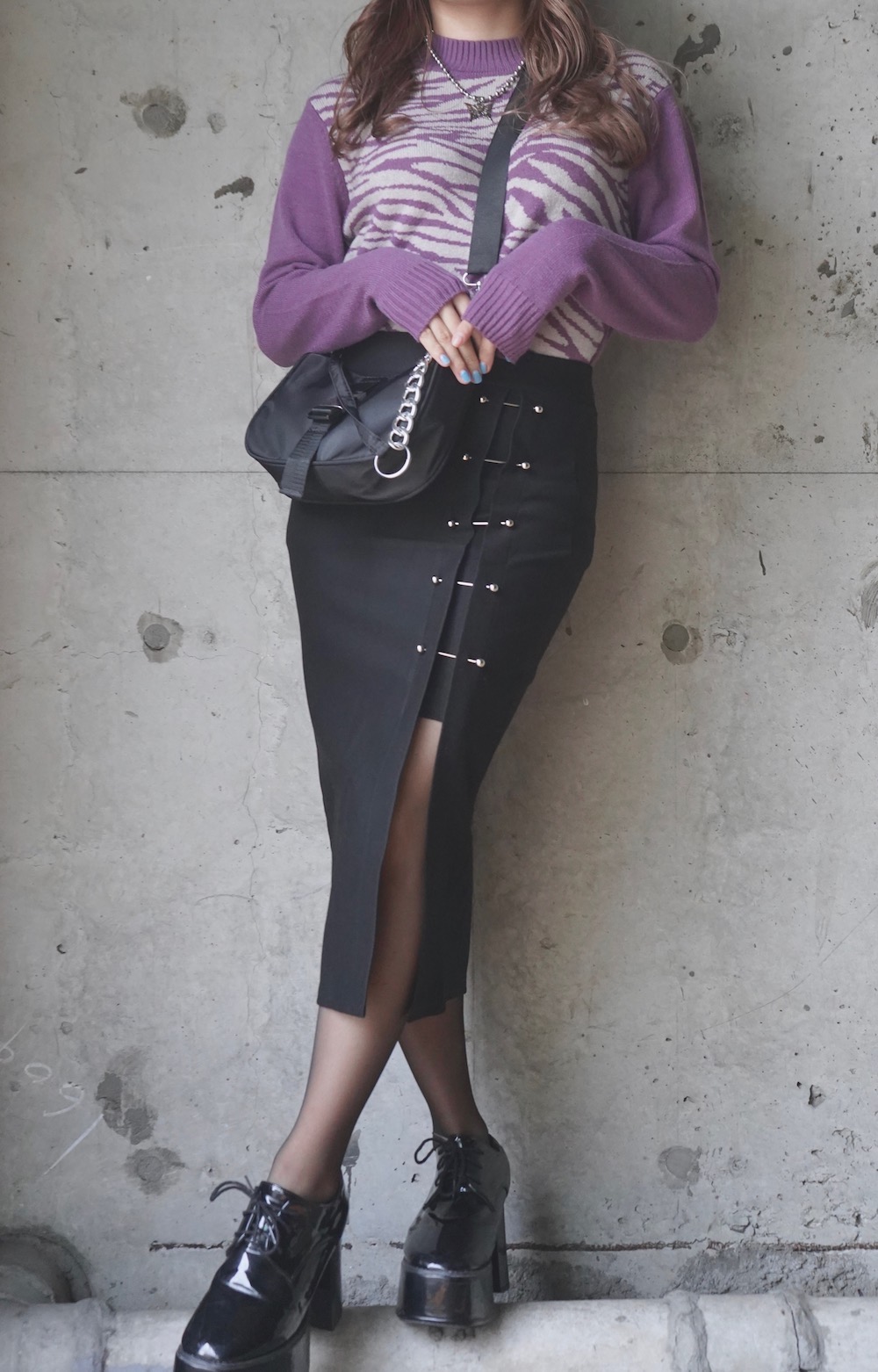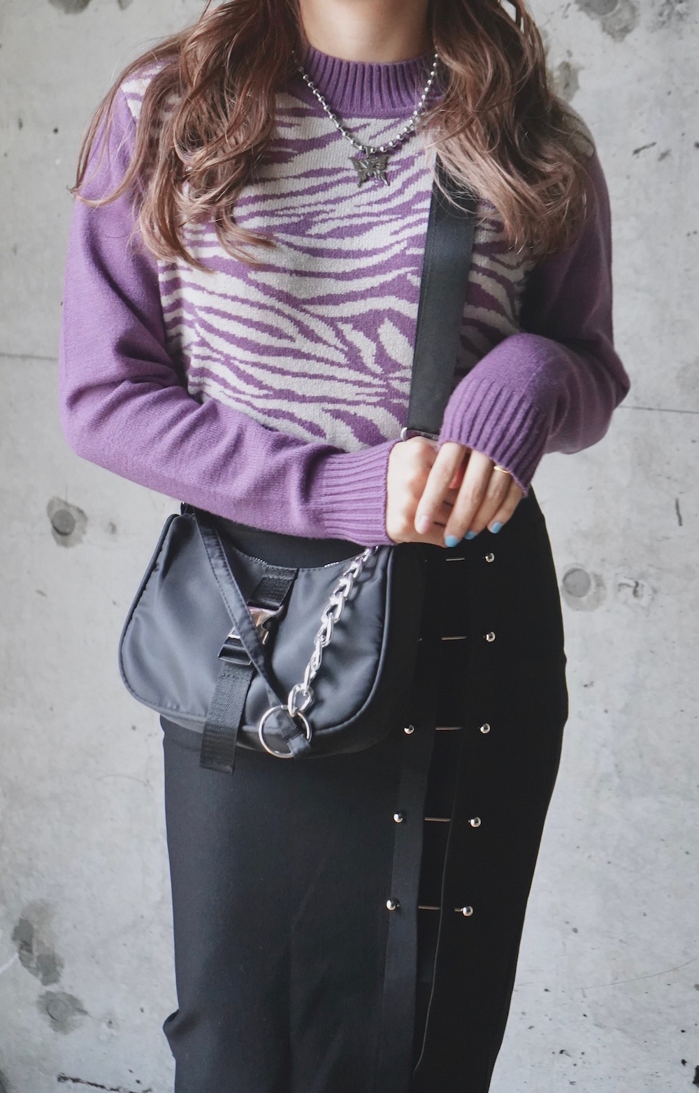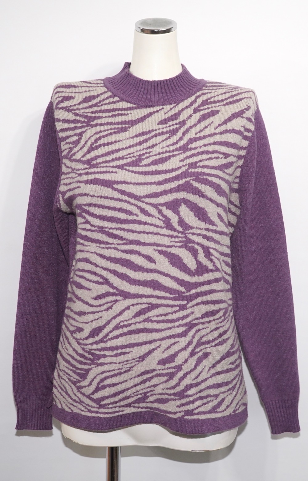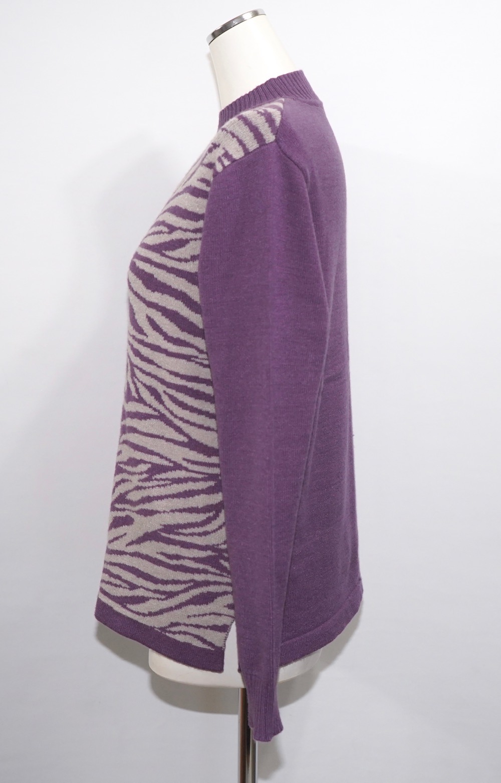 Zebra Pattern Mock Neck Knit Sweater (purple)