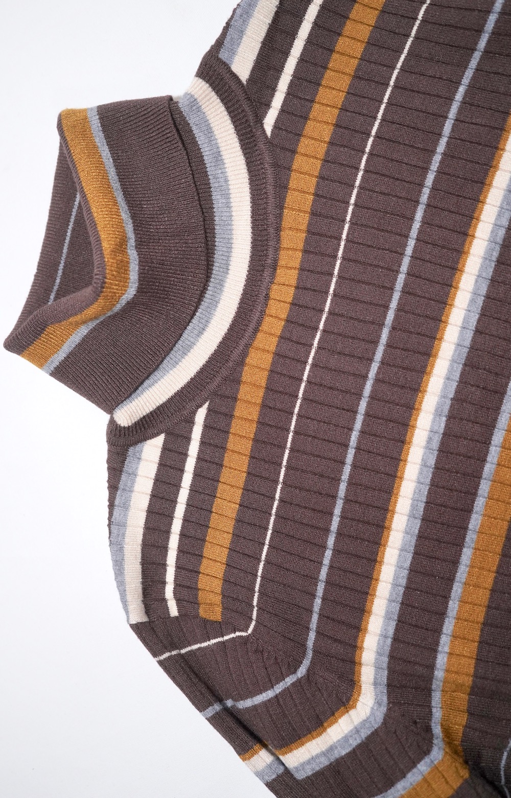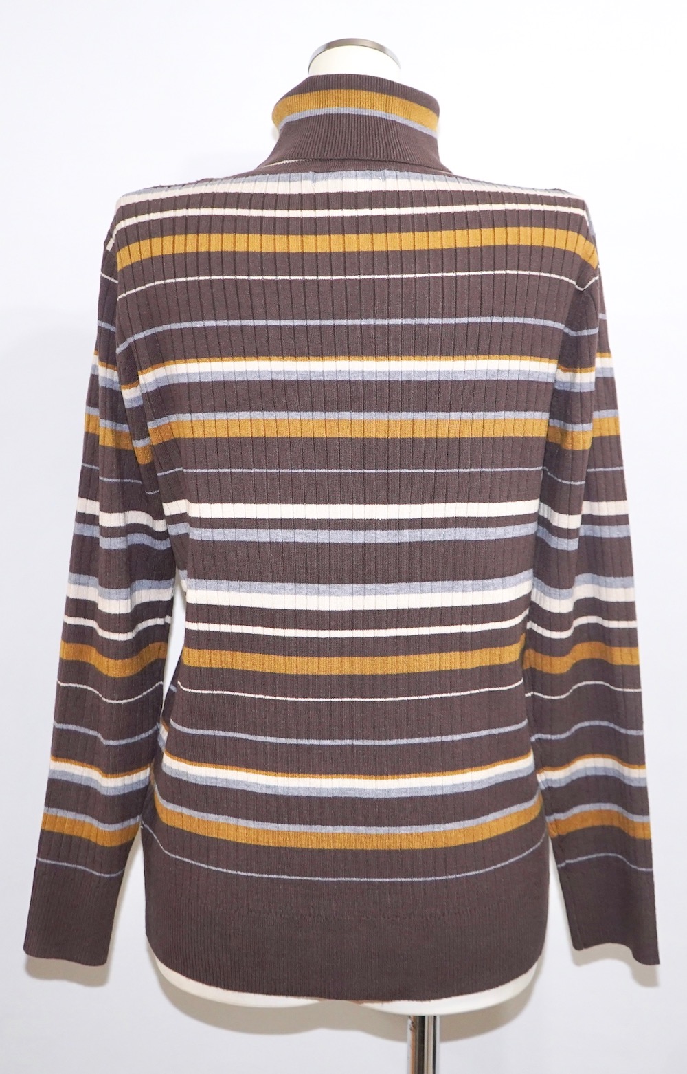 Multi Border Turtle Neck Rib Knit Tops(brown-yellow)