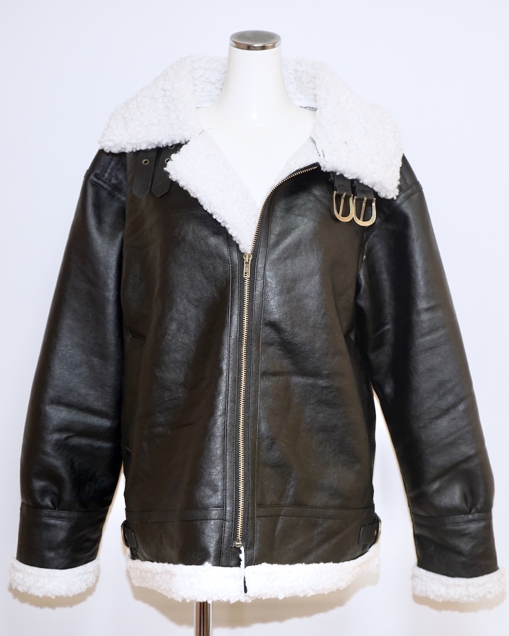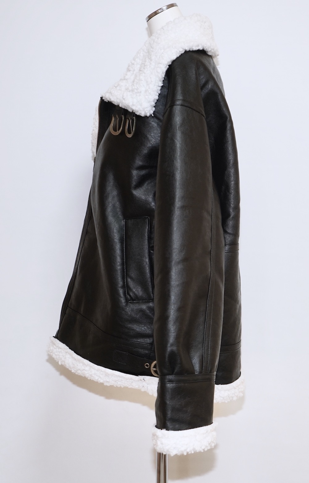 Leather Touch Boa B-3 Jacket Coat (black)