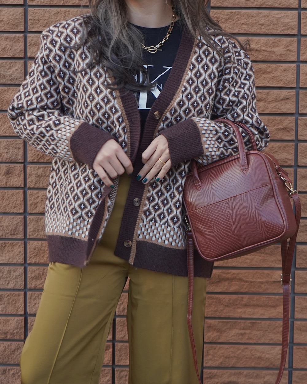 Jacquard Knit Big Cardigan (brown)