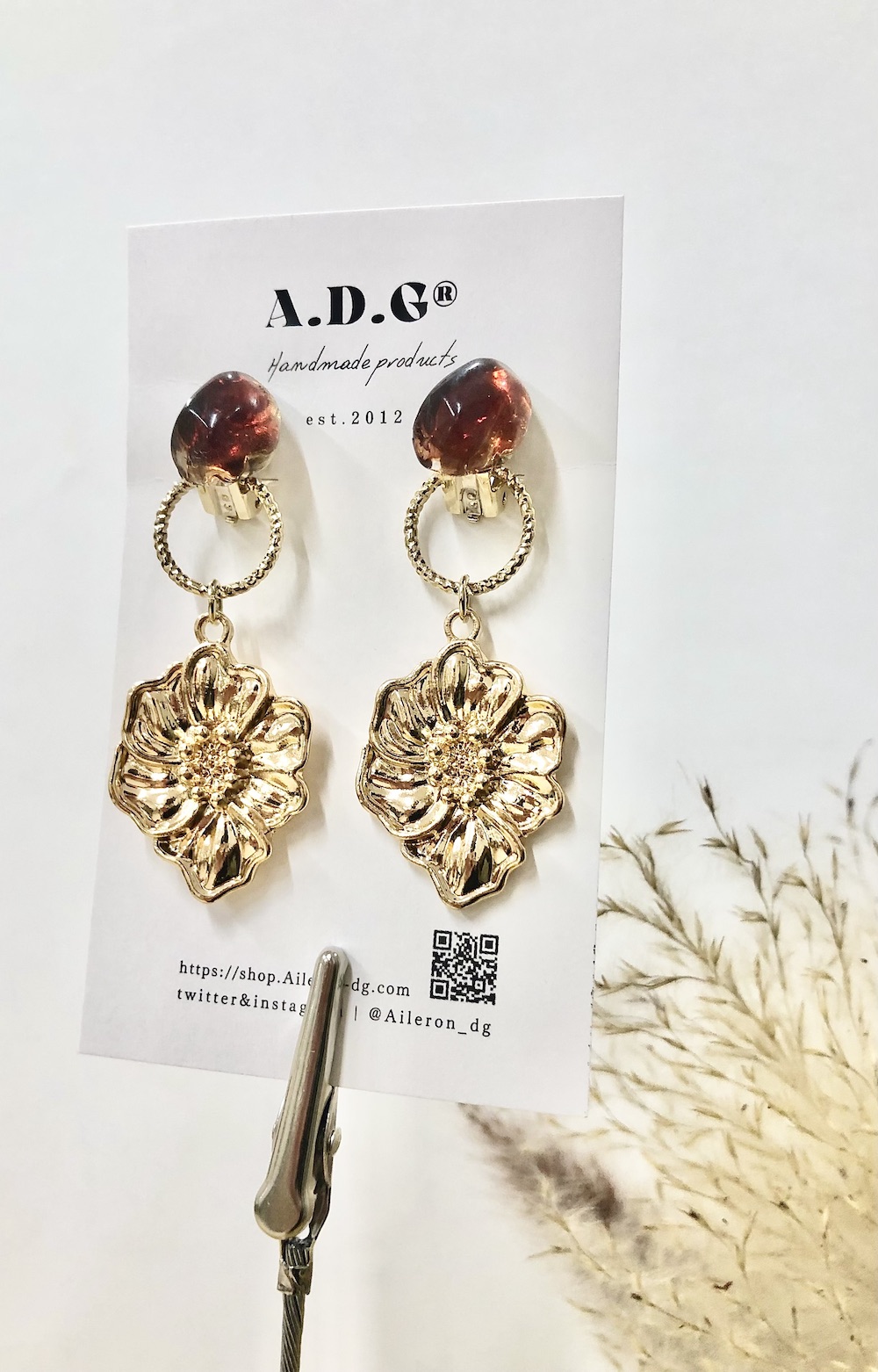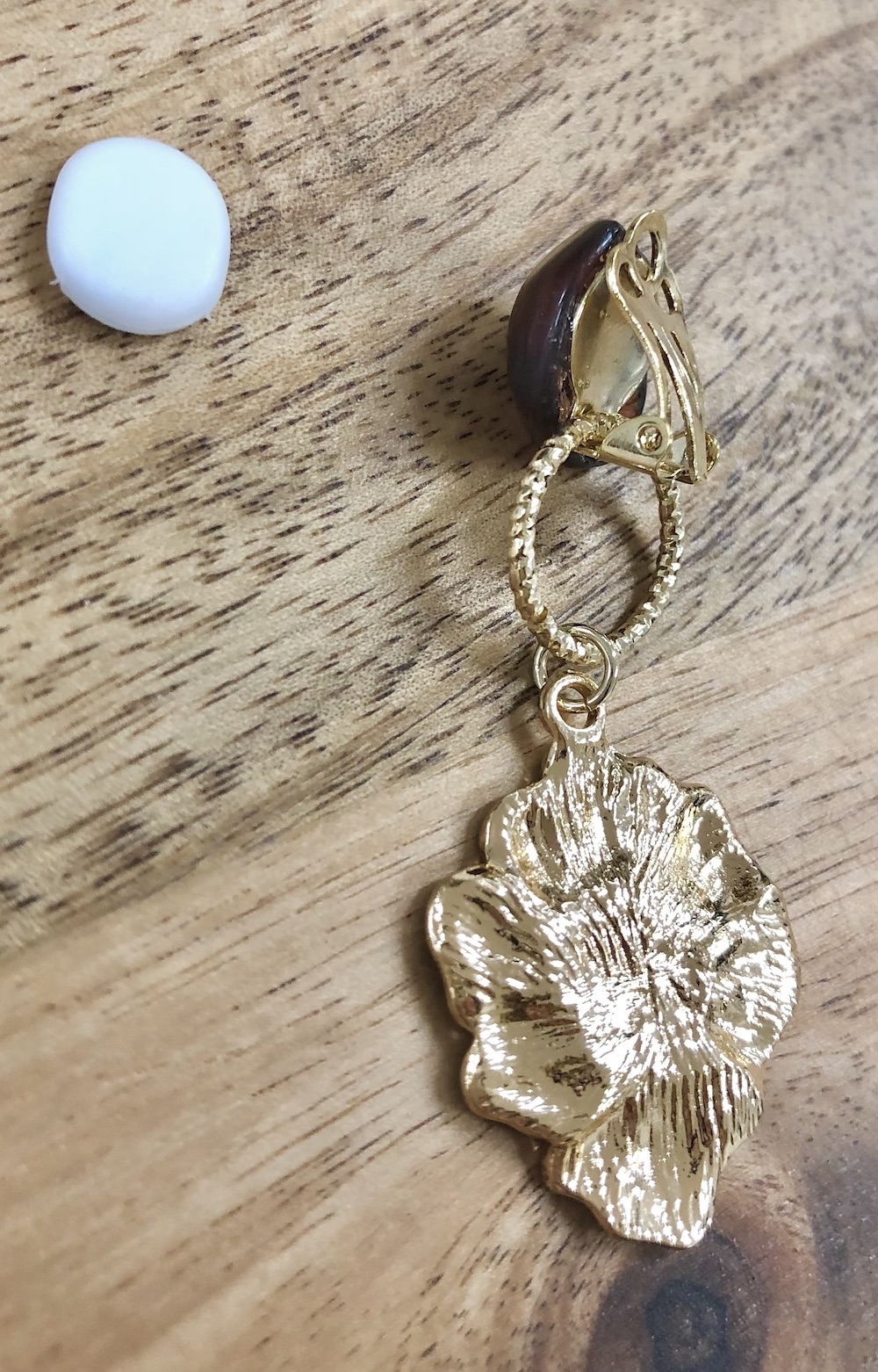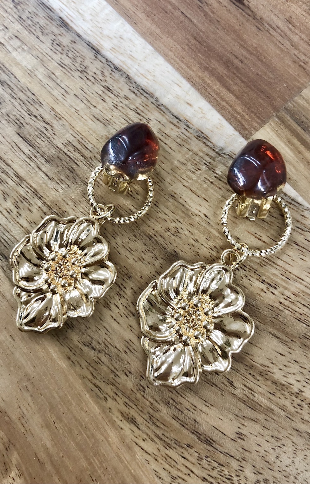 【handmade】nuance stone×metal flower earring(gold/brown)
