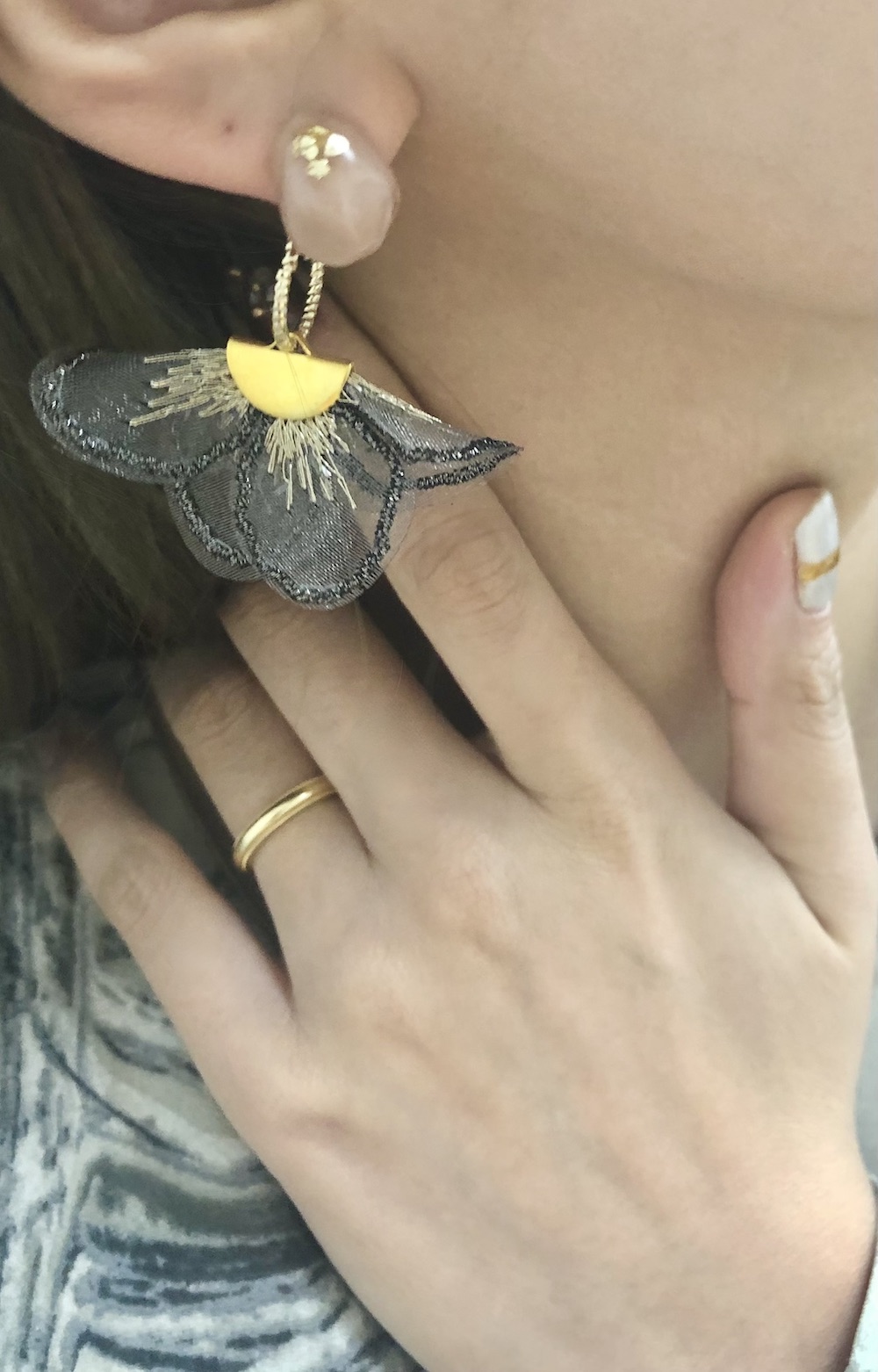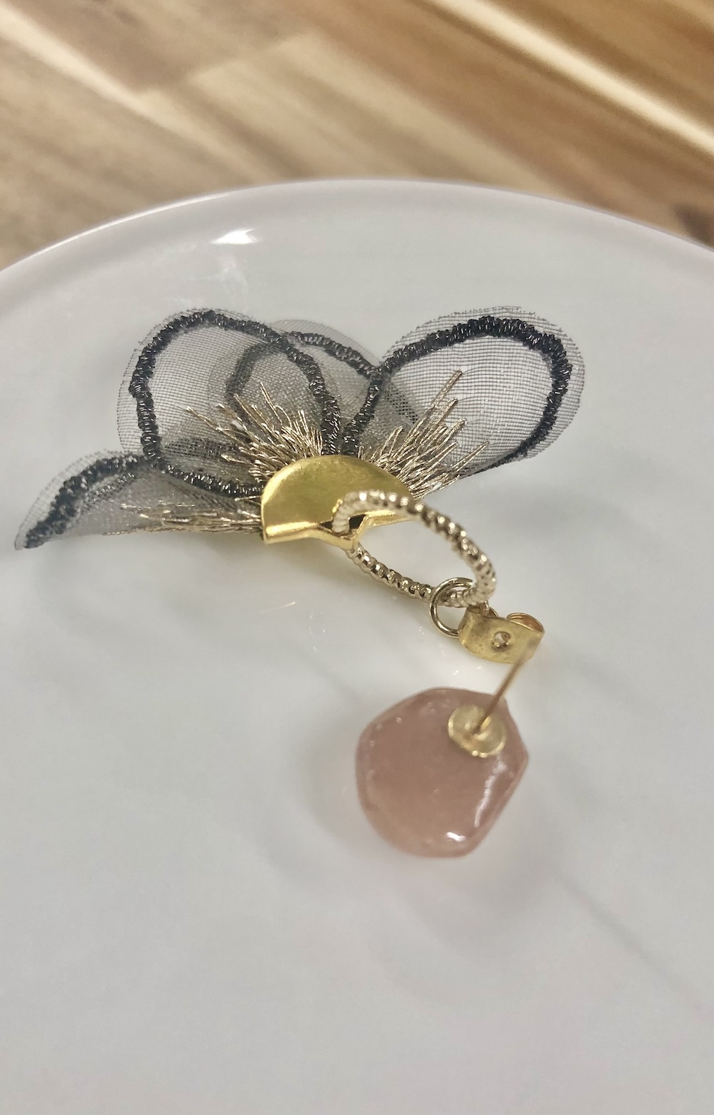 【handmade】nuance stone×flower tassel pierce(pinkbeige-grey)