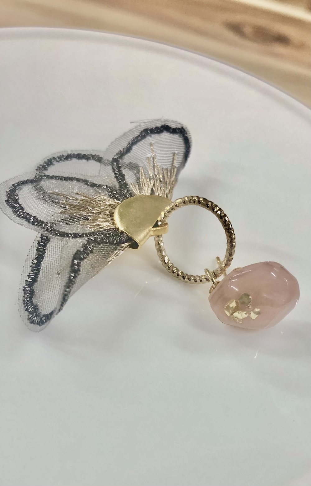 ゴールドクラッシュが煌めくくすんだピンクページュのストーンに、