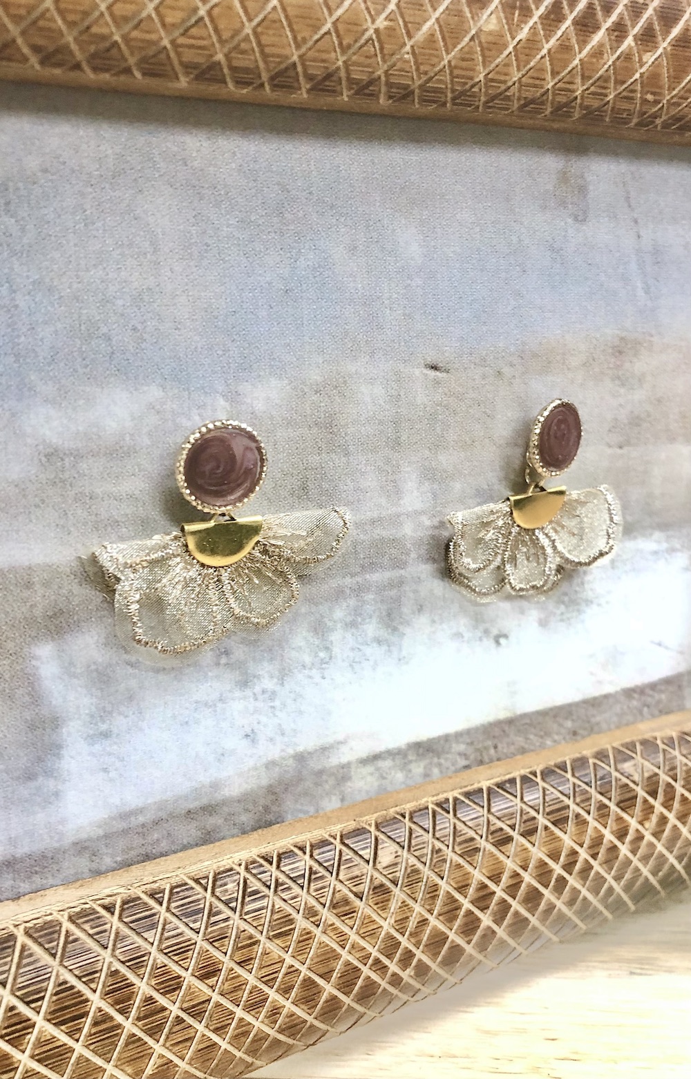 【handmade】circle head×flower tassel pierce(dustypurple-beige)