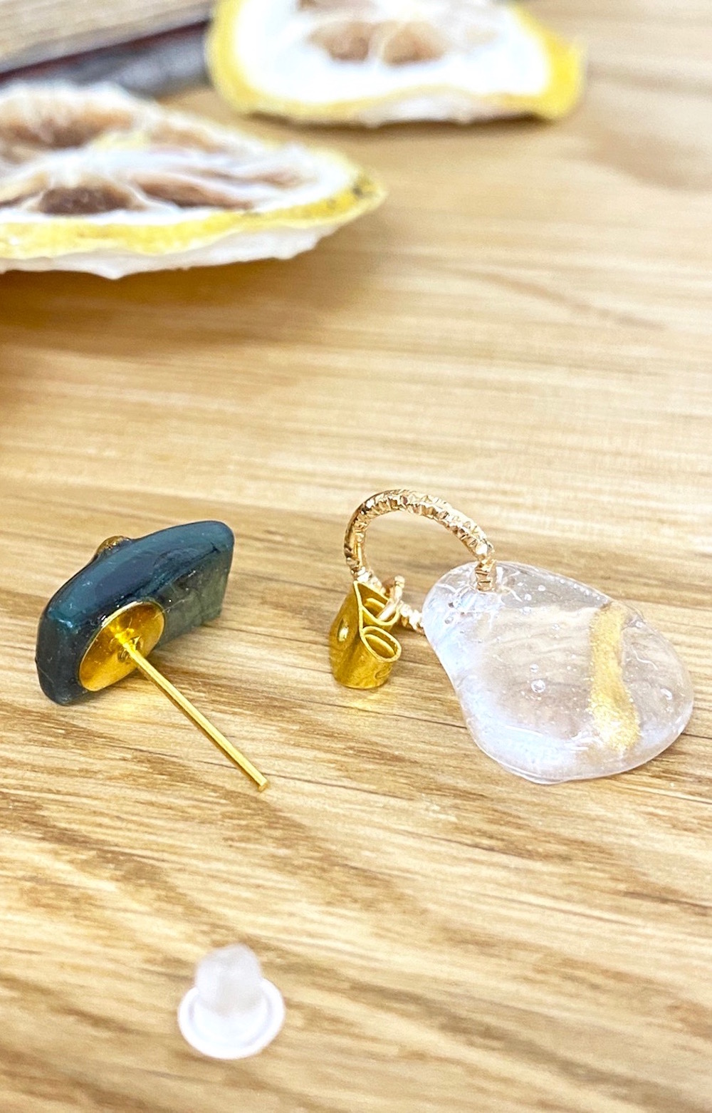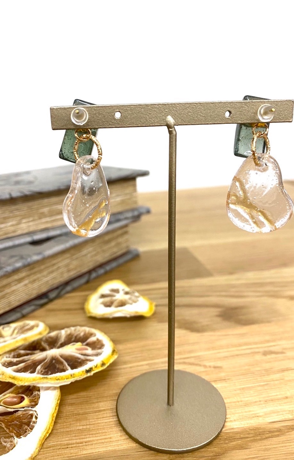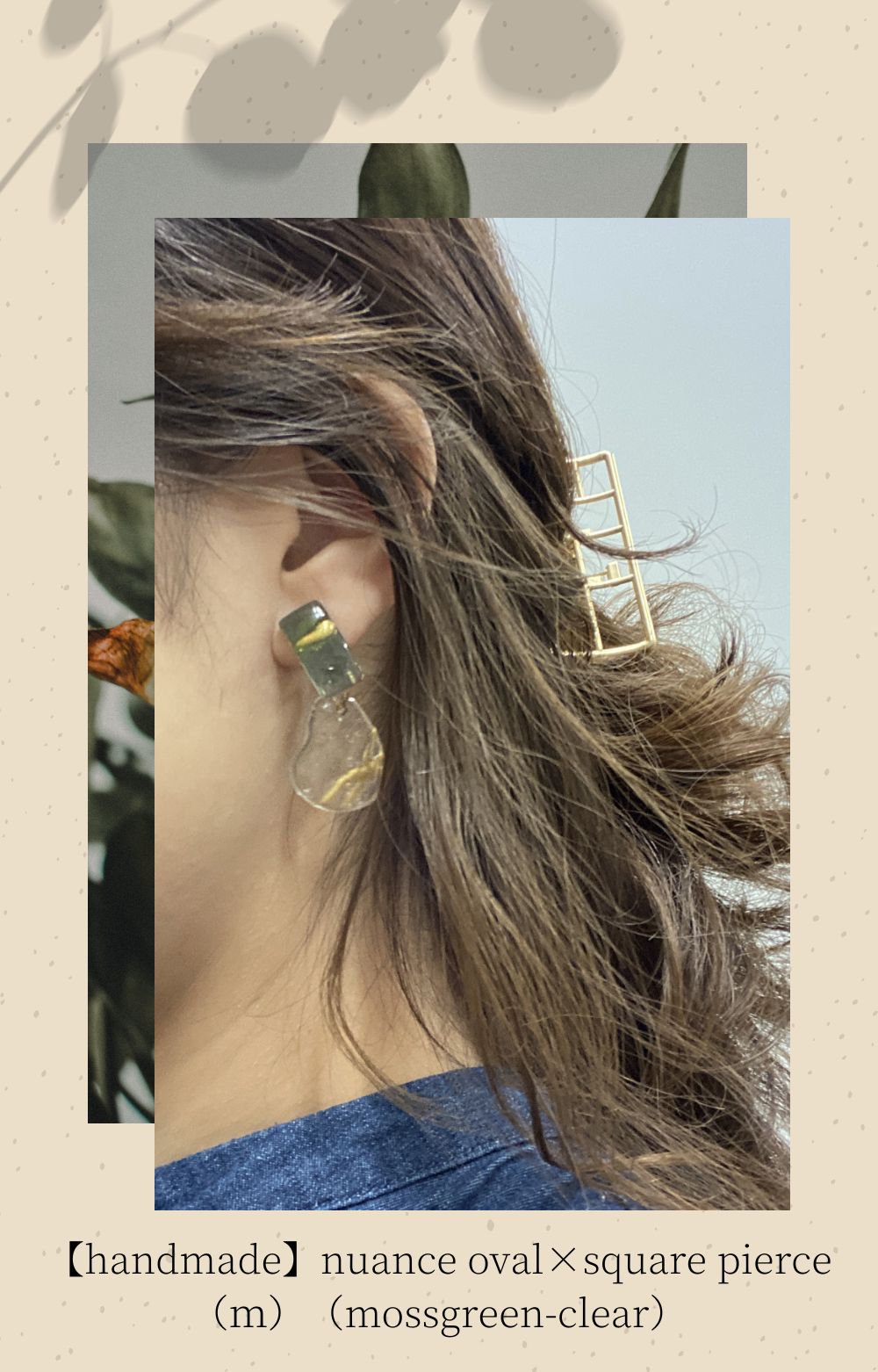 【handmade】nuance oval×square pierce(m)(mossgreen-clear)
