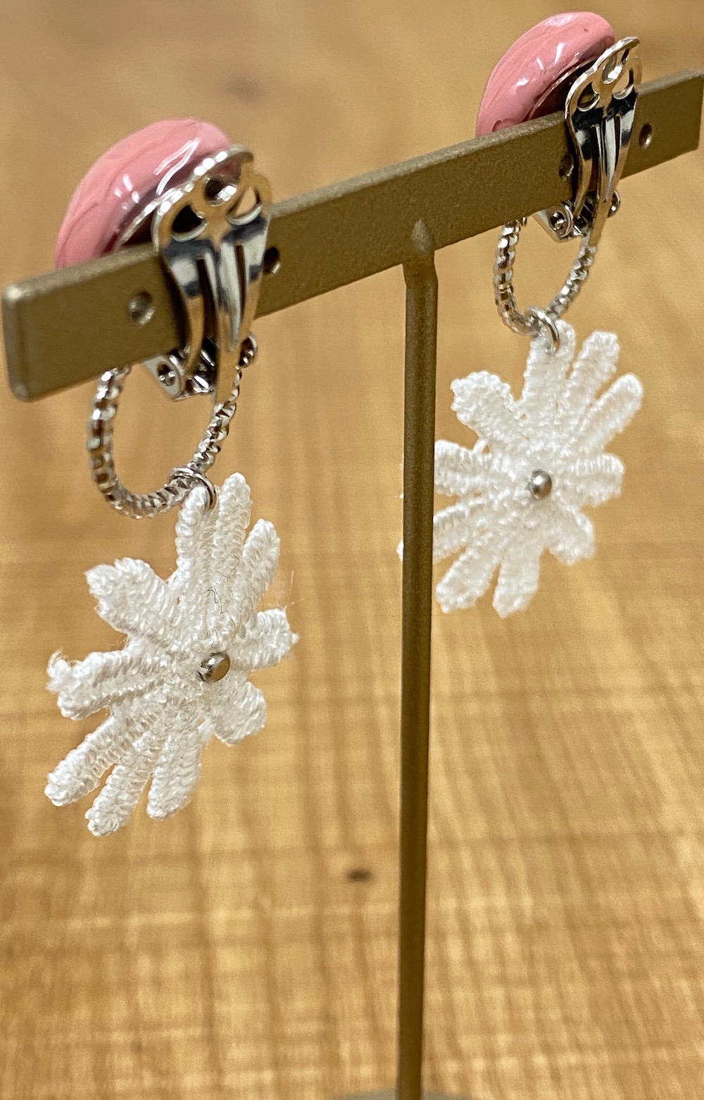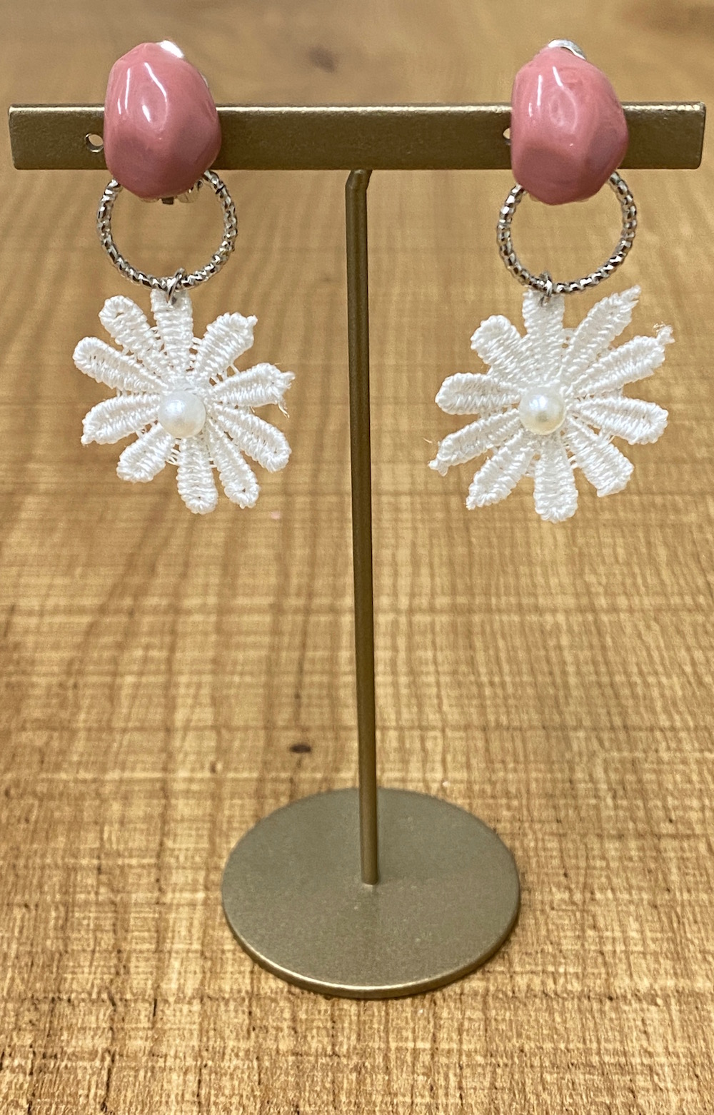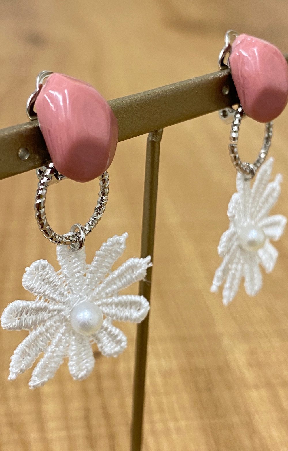 【handmade】 nuance stone× embroidery flower earring(silver-pink)