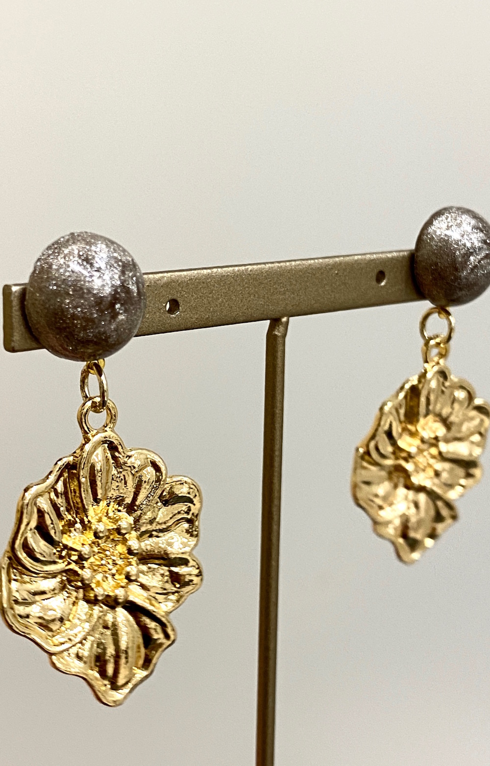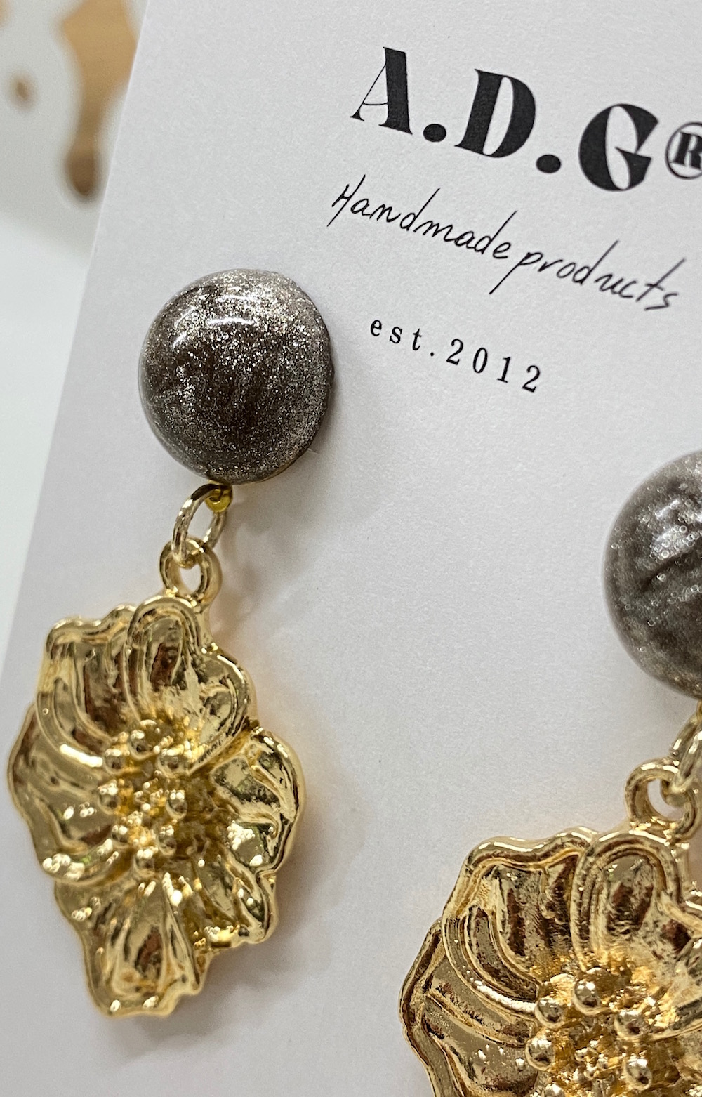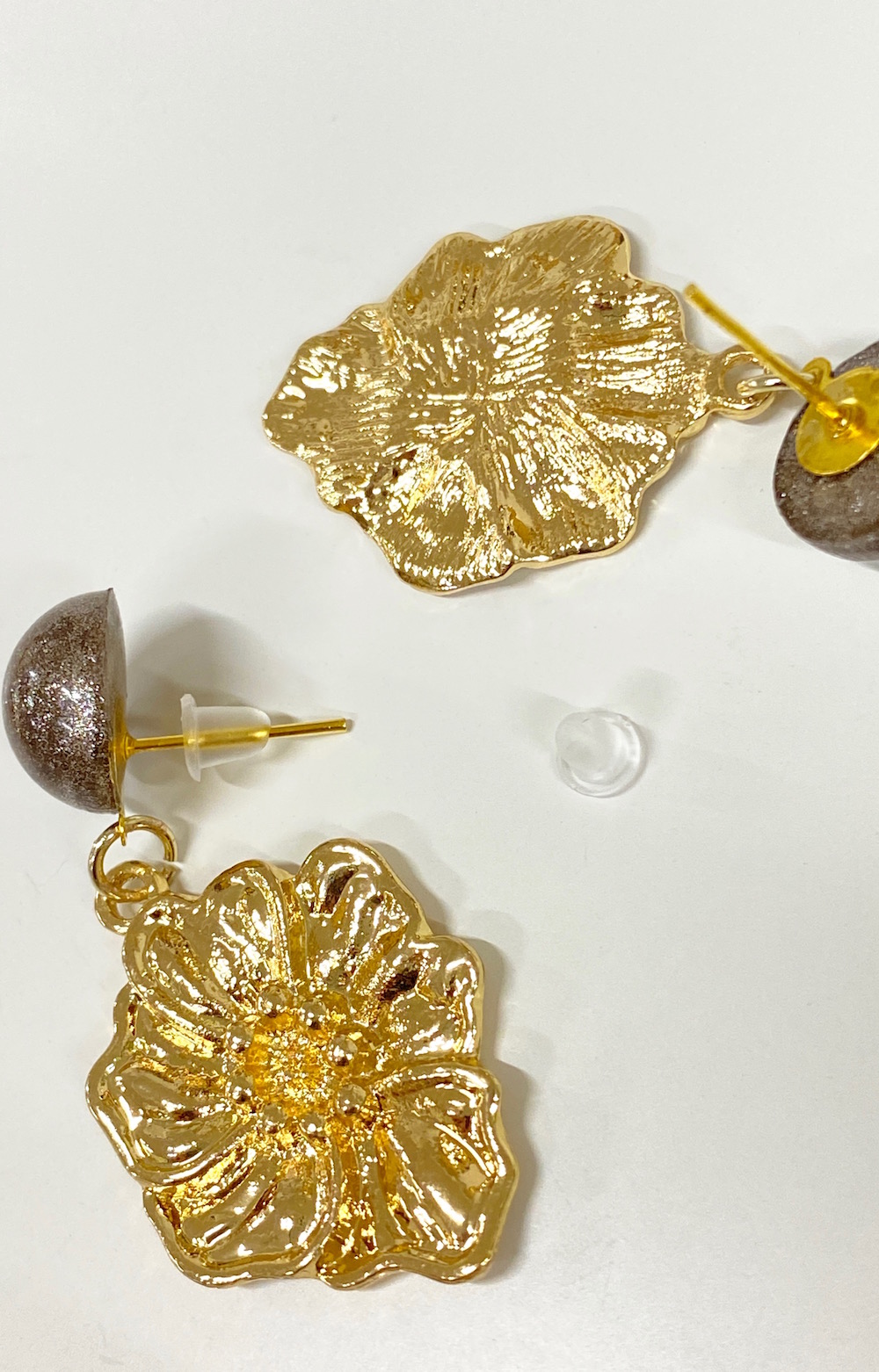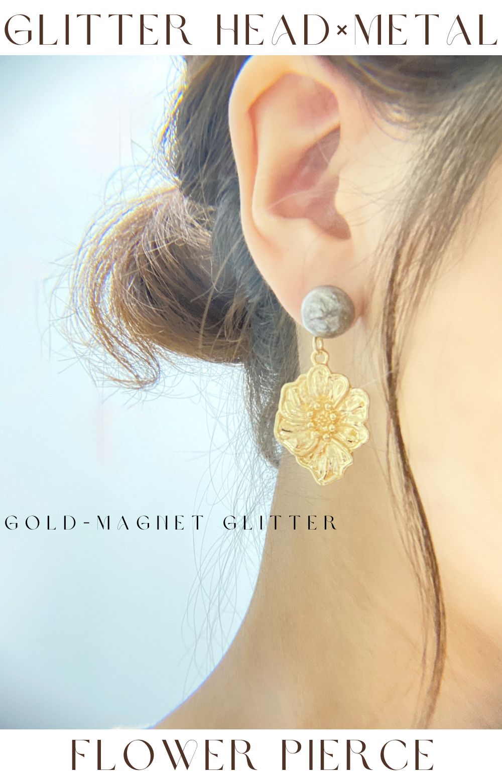 【handmade】glitter head×metal flower pierce(gold-magnet glitter)
