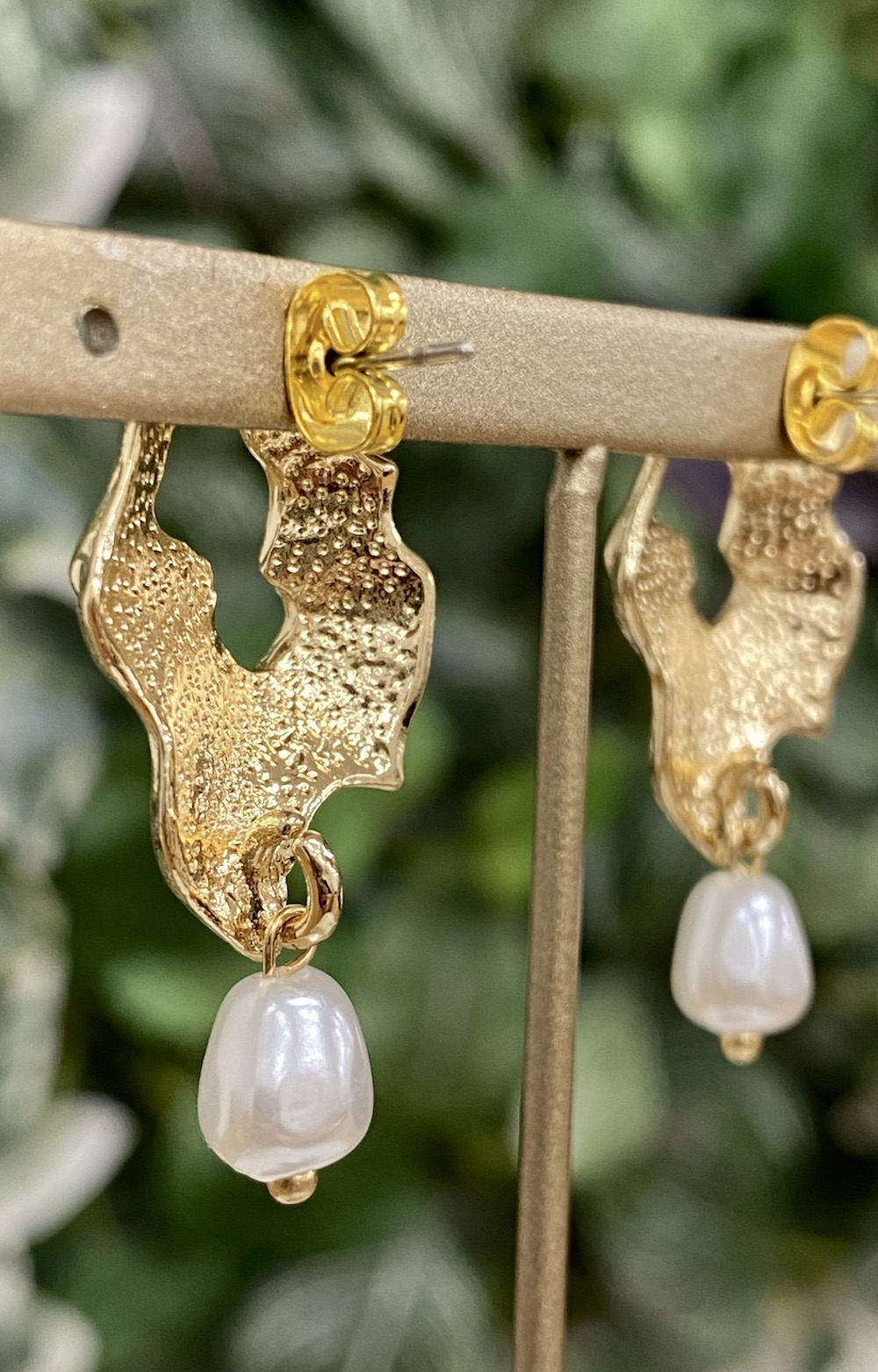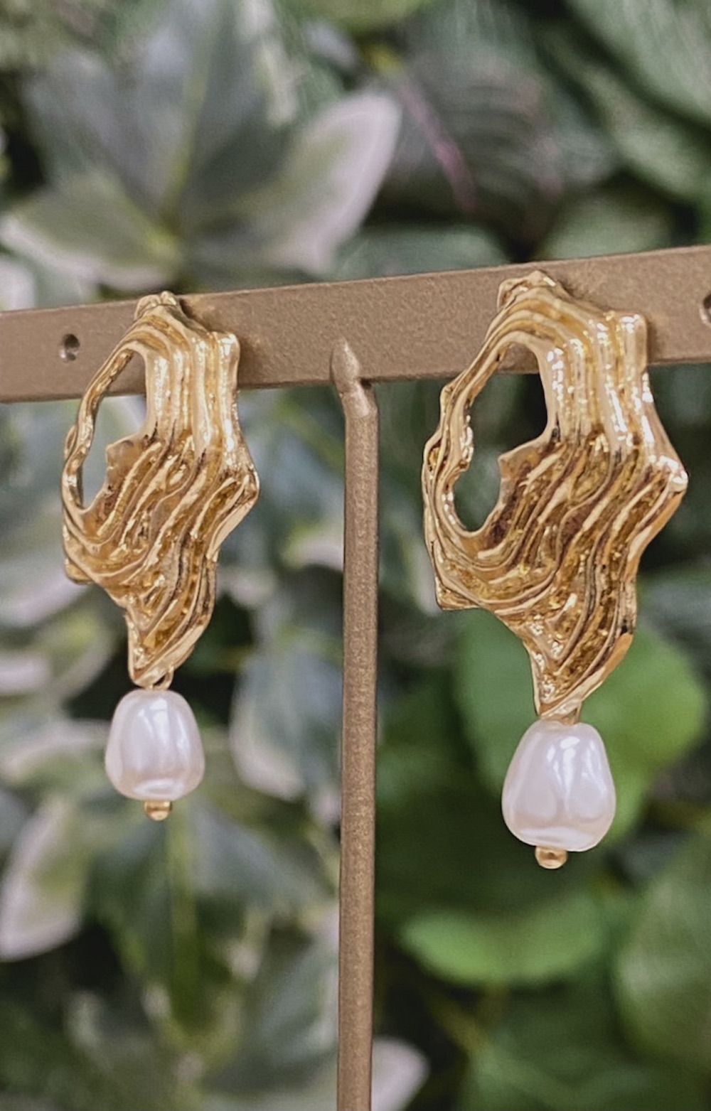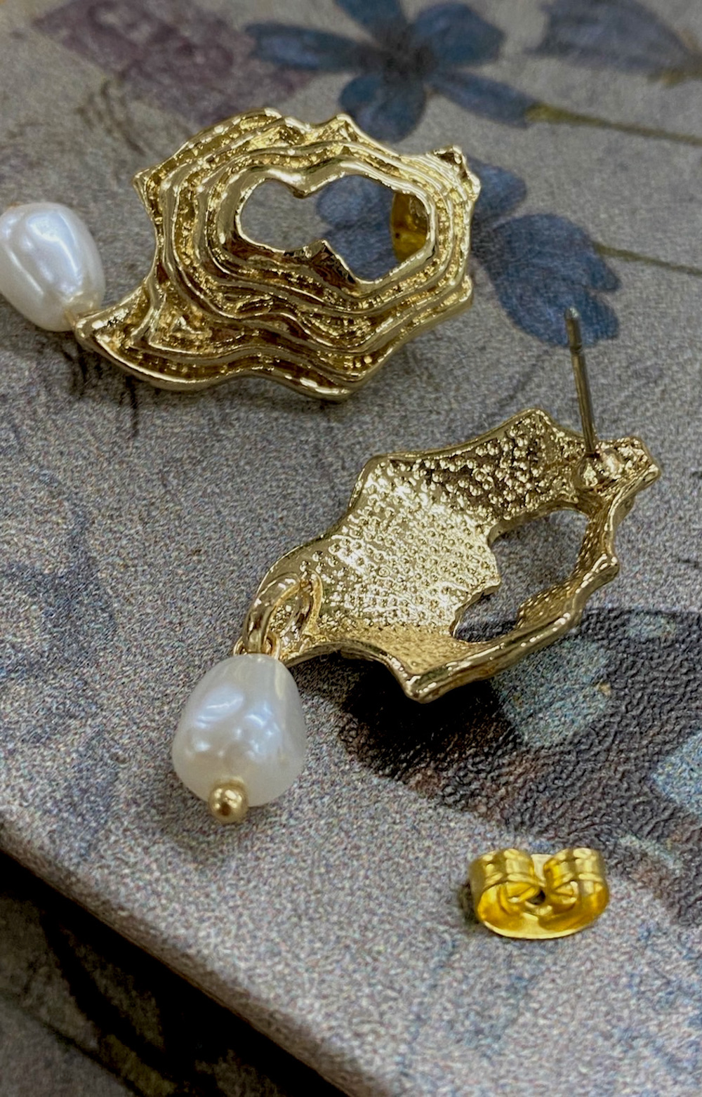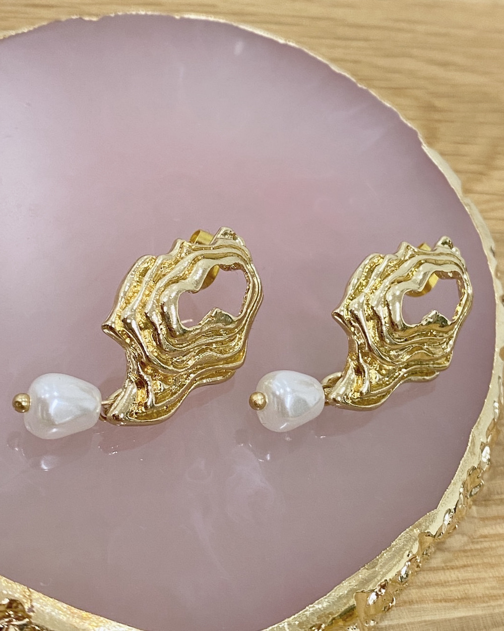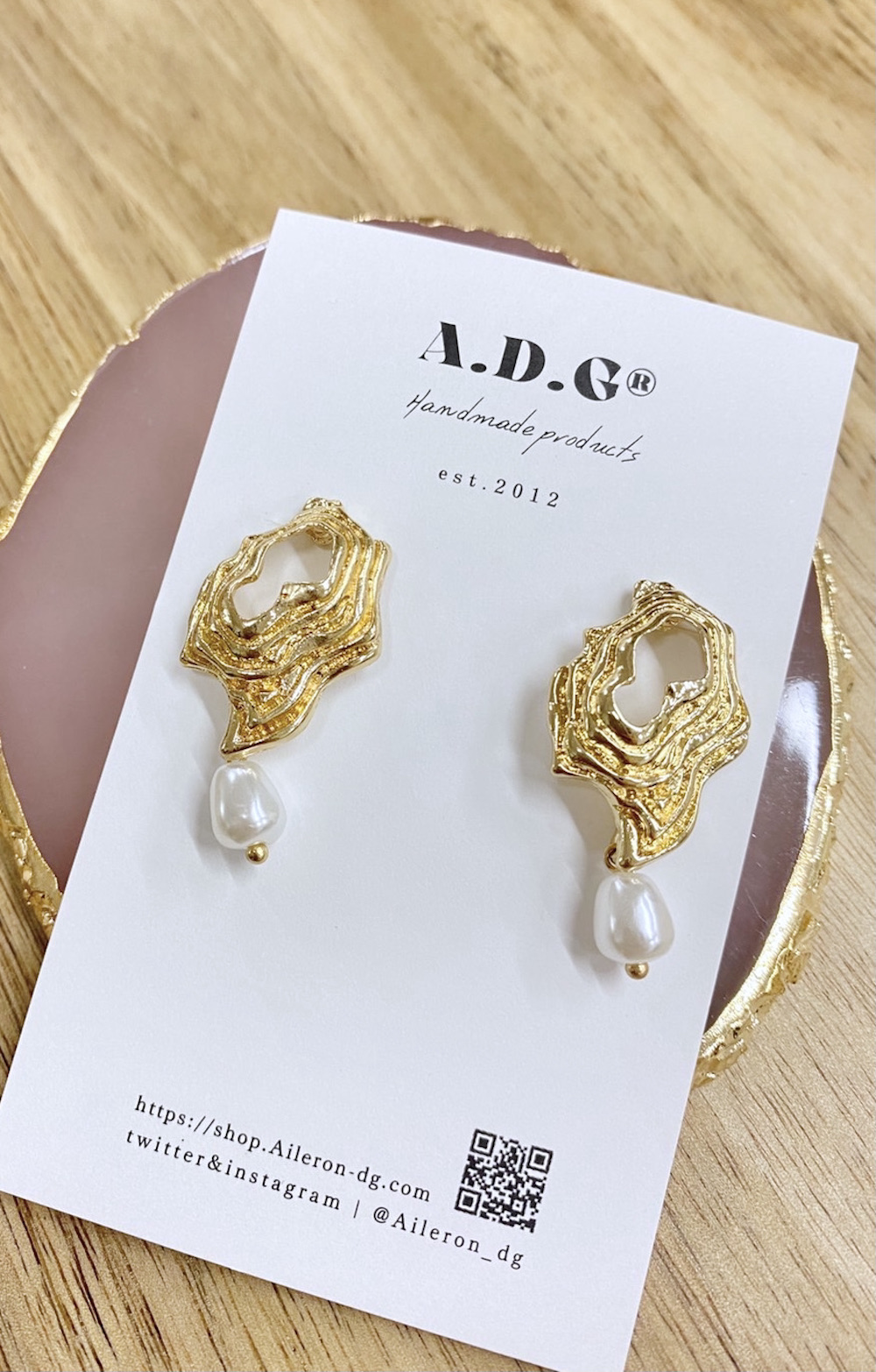 【handmade】nuance shape×pearl pierce(gold-white pearl)
