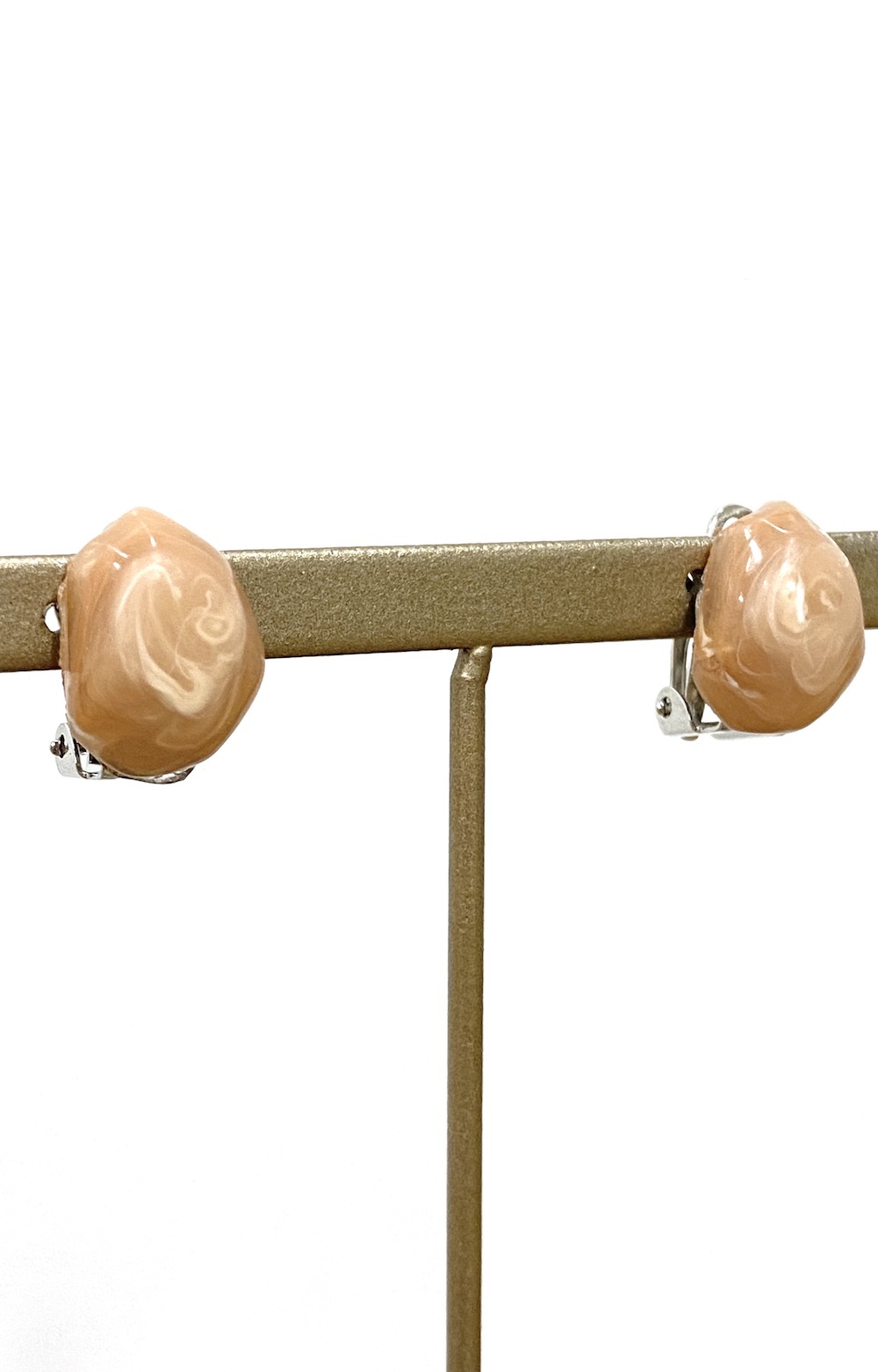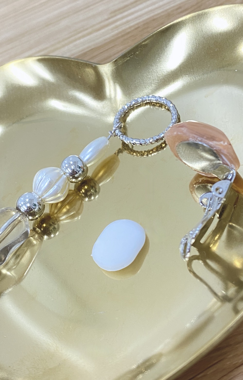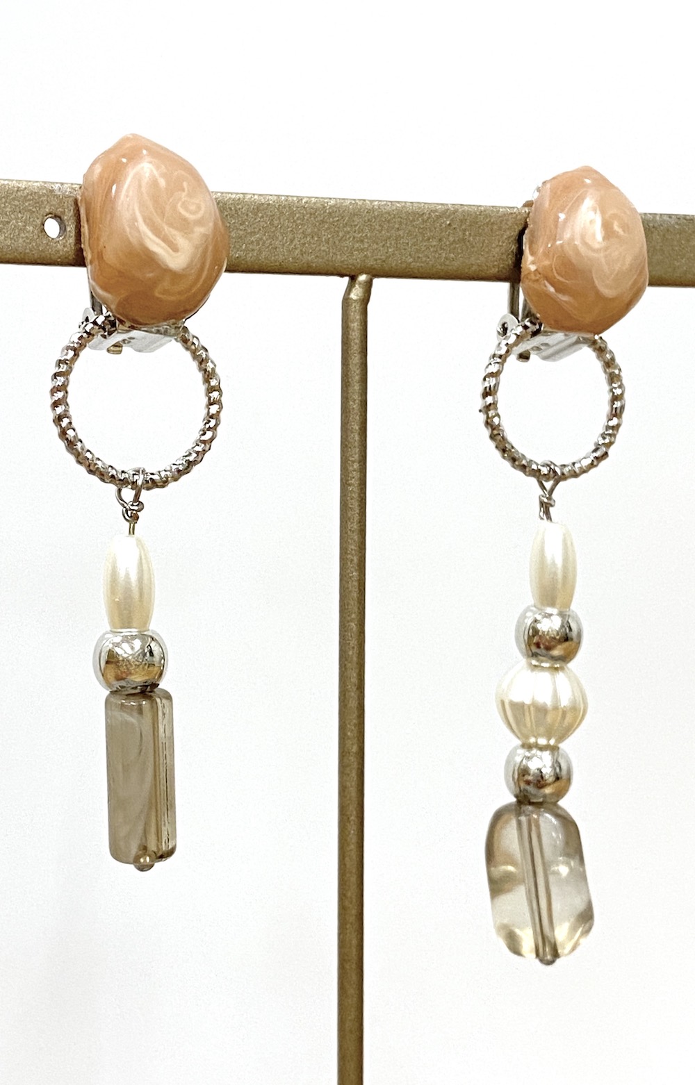 【handmade】 nuance marble stone asymmetry beads earring(silver-coral beige)