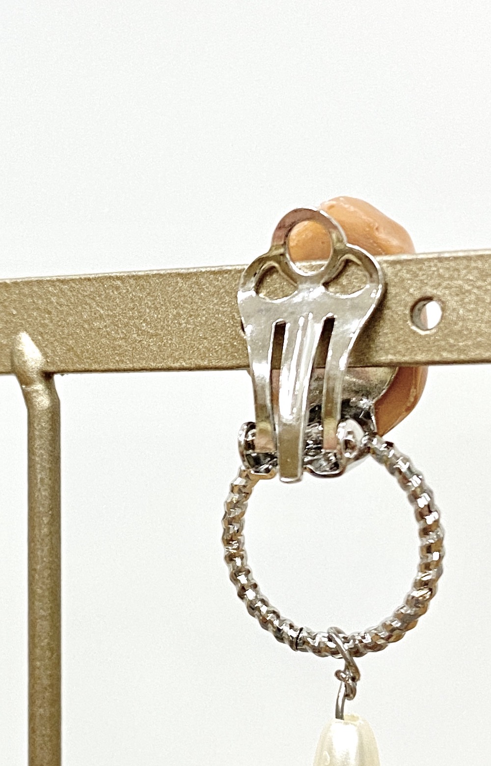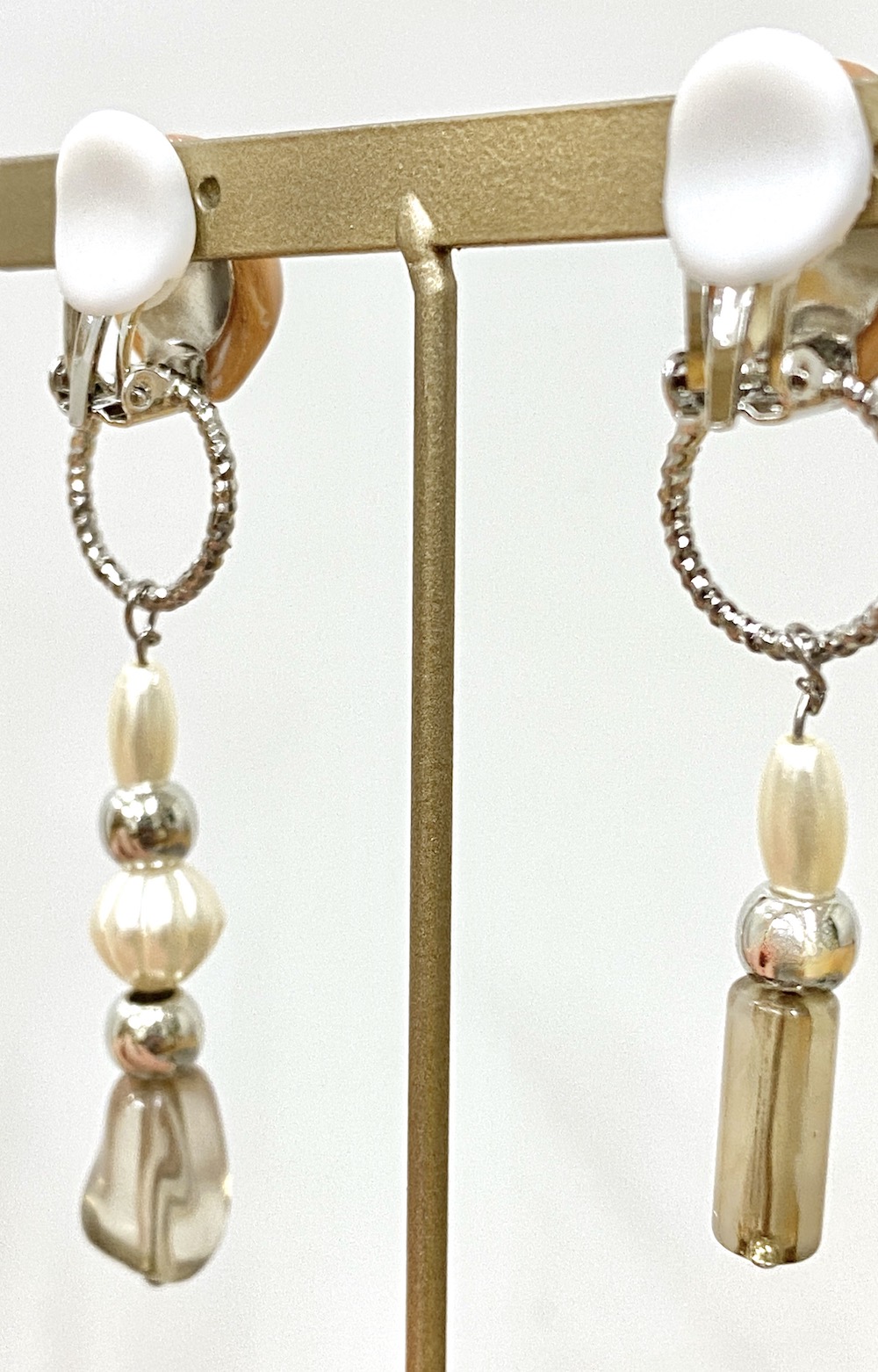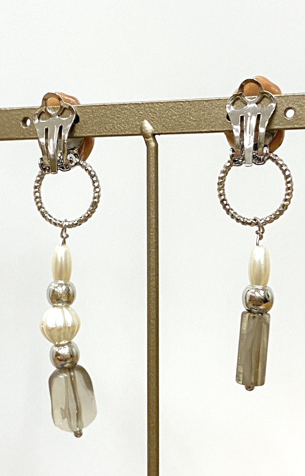 【handmade】 nuance marble stone asymmetry beads earring(silver-coral beige)