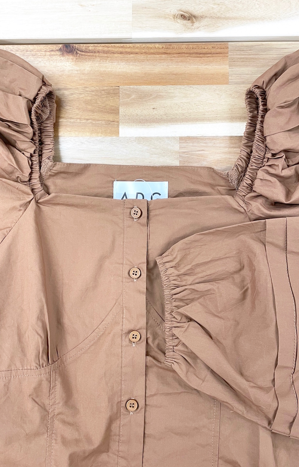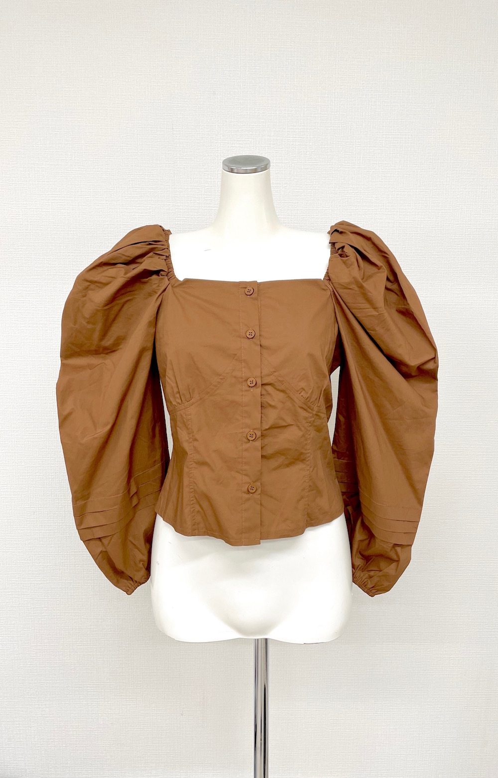 Puffshoulder Square Neck Tops (brown)