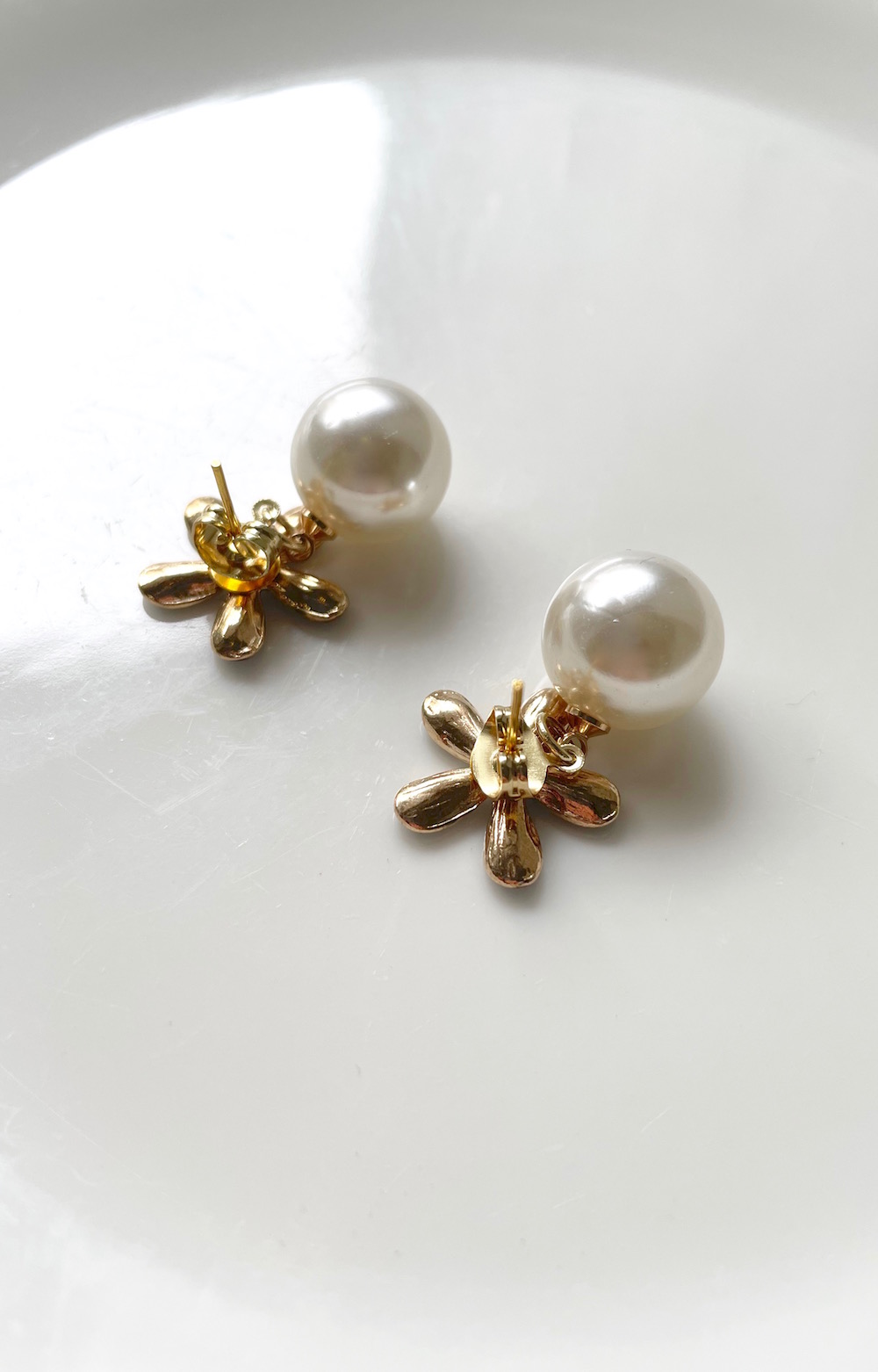【handmade】retro flower×pearl pierce(gold-black-white)