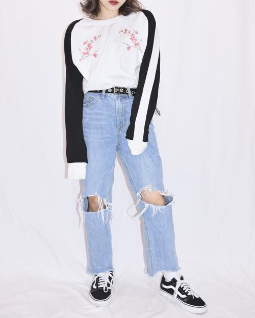 (全2色)"cherry blossom" 刺繍スウェットプルオーバー