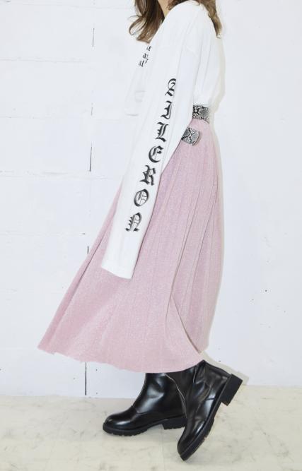 キラキラプリーツニットスカート(Baby Pink)