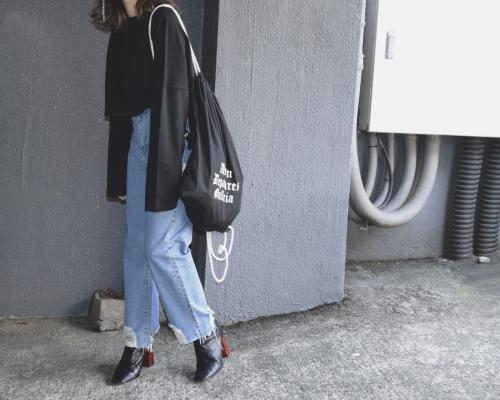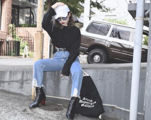 ブラックルーズフィットロングスリーブT