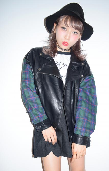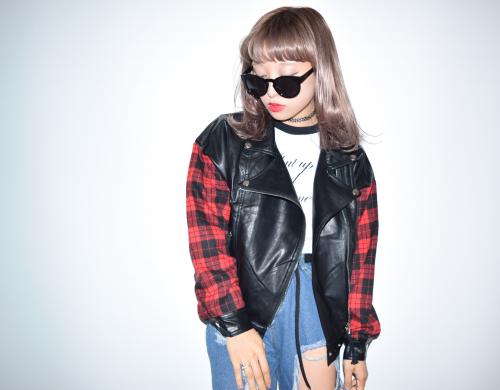 (全2色)チェックアームライダースジャケット