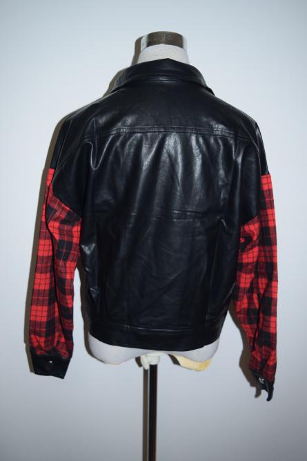 雑誌【Popteen】12月号 掲載 アームのチェック切替、 ルーズなドルマンシルエットがオシャレな フェイクレザージャケット! お色はレッドとグリーンの2色展開☆