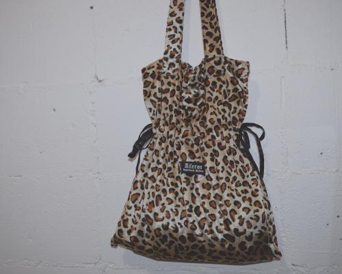 (SIZE)FREE 縦幅41cm 横幅38cm 持ち手丈26cm (COLOR) ・Leopard (RANK) SS / 新品アイテム (DETAIL) ・ベロア地 ・左右の紐はサテン ・左右の紐で口を絞れます
